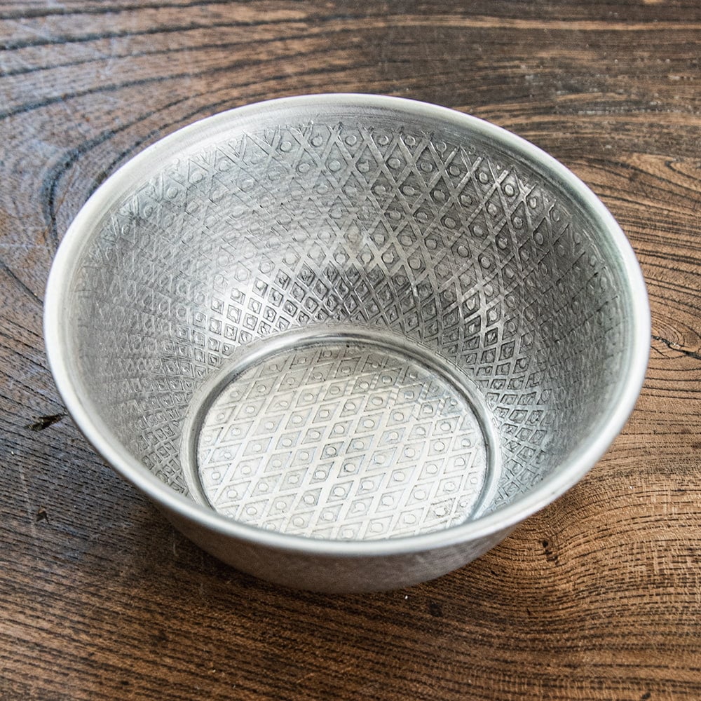 ムスリム職人の手仕事が息づく 薄彫り アルミボウル 直径:約12cm x 6個