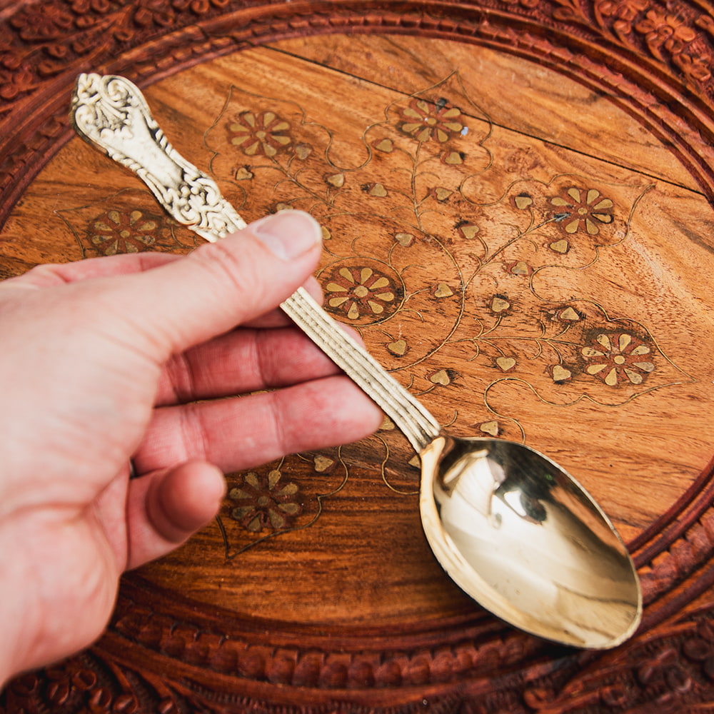 【2個セット】ネパールのブラス スプーン 重厚なカレースプーン ダルバートなどに 約17cmです。セットでお得になっています♪