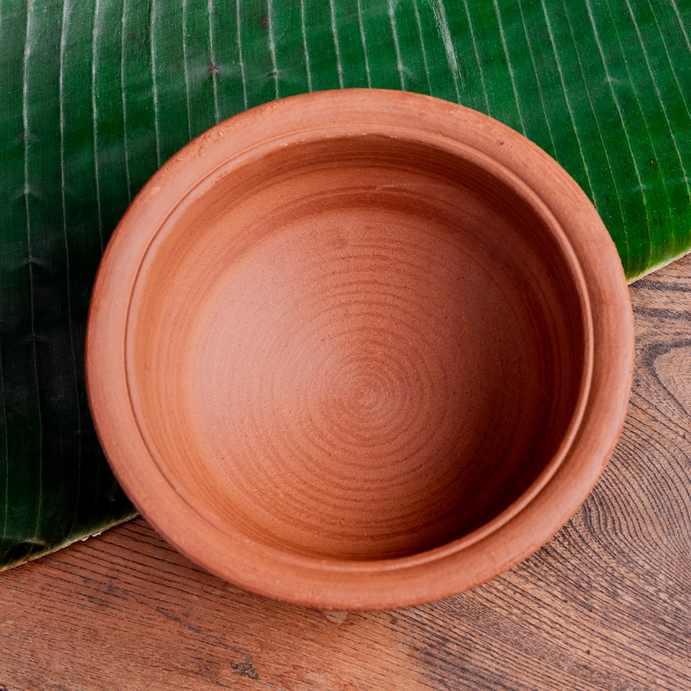ワラン - スリランカ伝統の素焼き鍋 walang 蓋付き テラコッタ製 直径23.5cm程度(SL-CRFT-21)の写真です