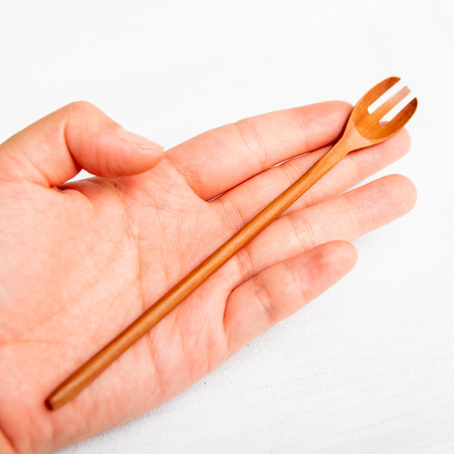 具材がすくいやすい!天然木のミニ先割れスプーン