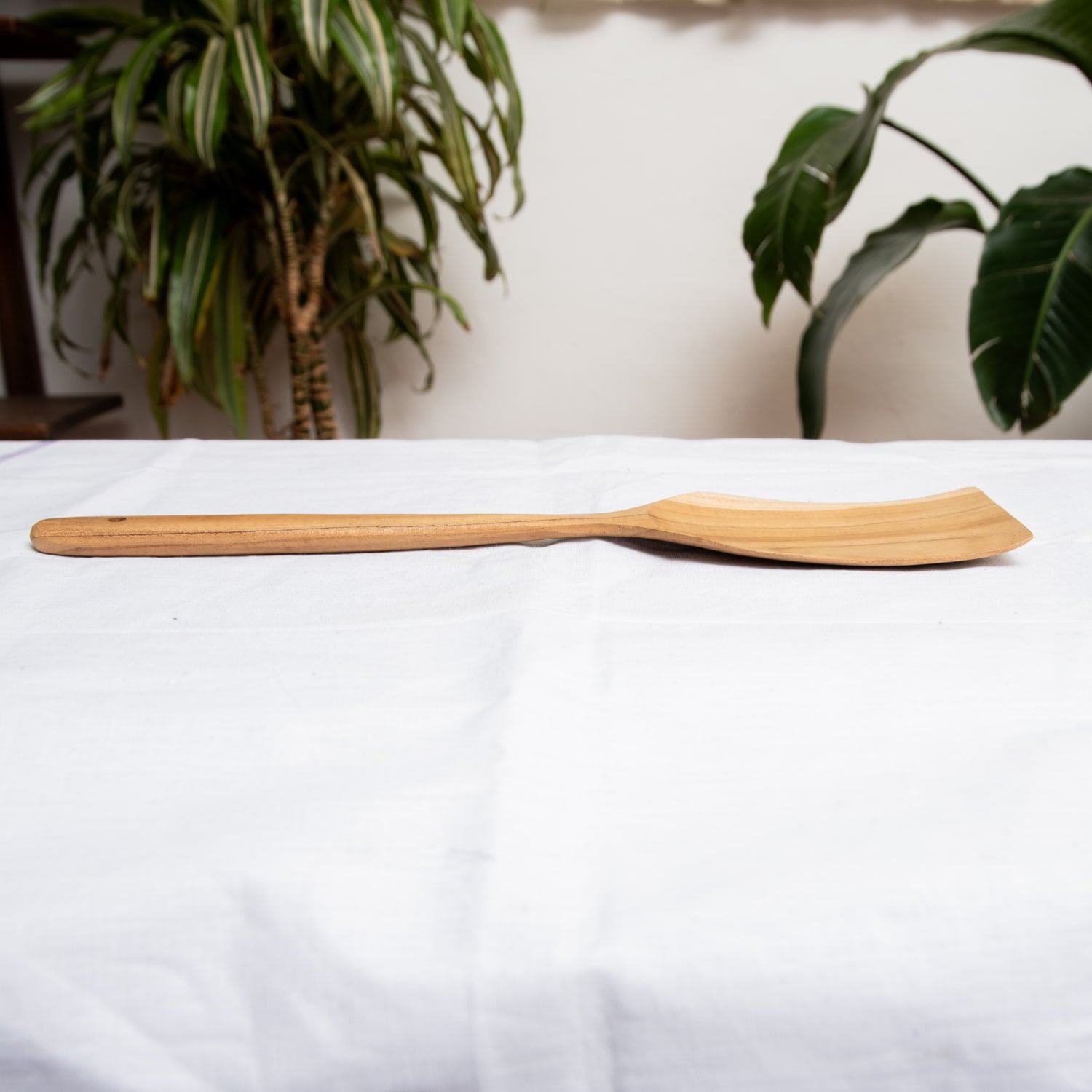こちらのヘラは全長38cmにも渡る、本格的な大型サイズ。大鍋の端に掛けておいても中に落ちてしまわない、たっぷり大量調理にも向いた大きさです。お料理中の熱にも強く、便利で頑丈な木べらは幾つあってもいいものです。木製なので鍋肌を痛めることなく、しっかり混ぜ返す動きもできる、ベーシックなスクエア型です。
