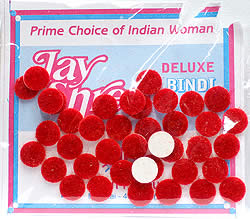 インドで昔から額に付けるおしゃれとして親しまれてきたビンディー。最近は一寸手の込んだビンディが多いのですが、インドの女性が毎日そんないいものをつけているわけではありません。みんな、もっと普通の凄くシンプルな物をつけているんですね。