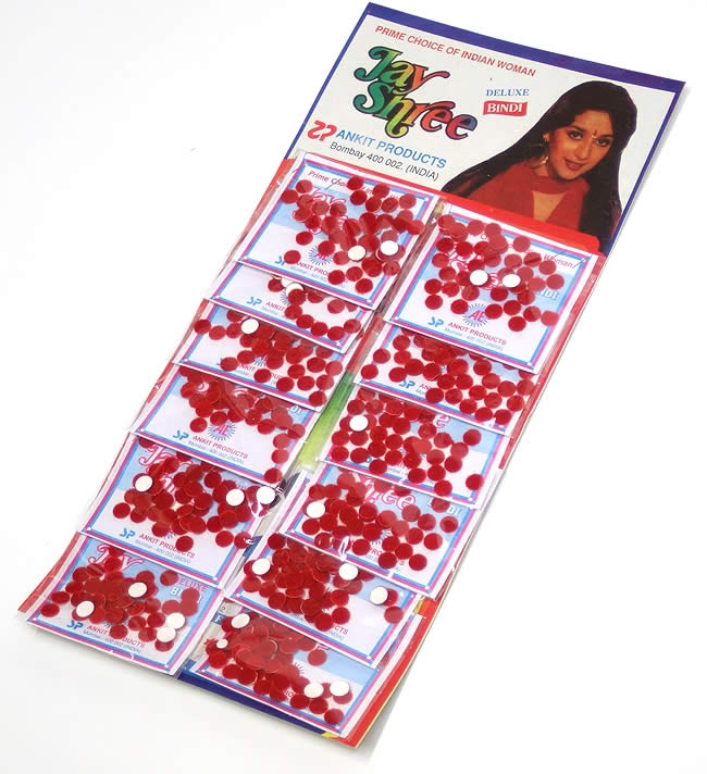 このビンディは、結婚した女性が毎日つける、普段使い&シンプルなビンディなもの。毎日使う物だから、とにかくいっぱい入っています。100円でこれだけ入っているビンディがなんとシート売り!! 12パック付きですので、つかってもつかっても減らないお得パックです。