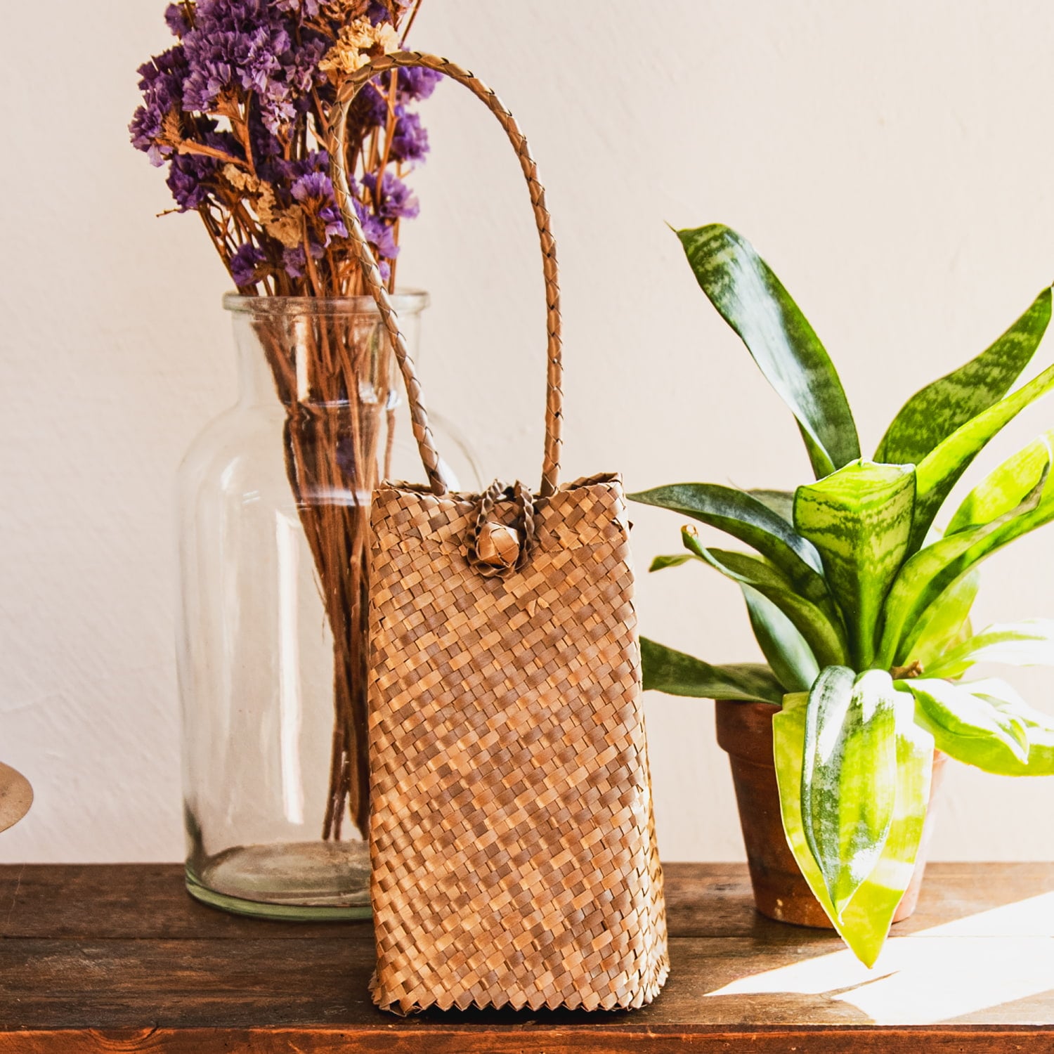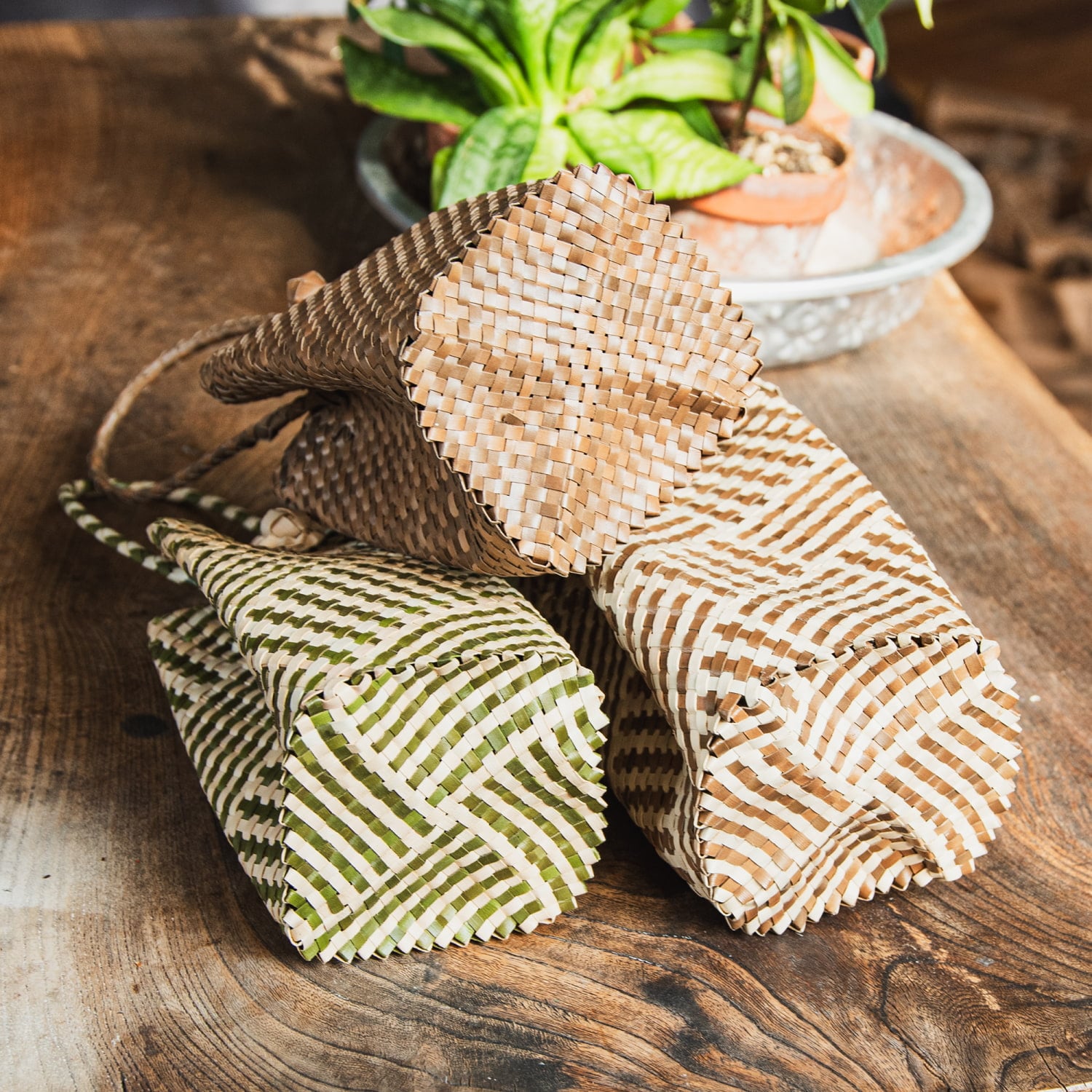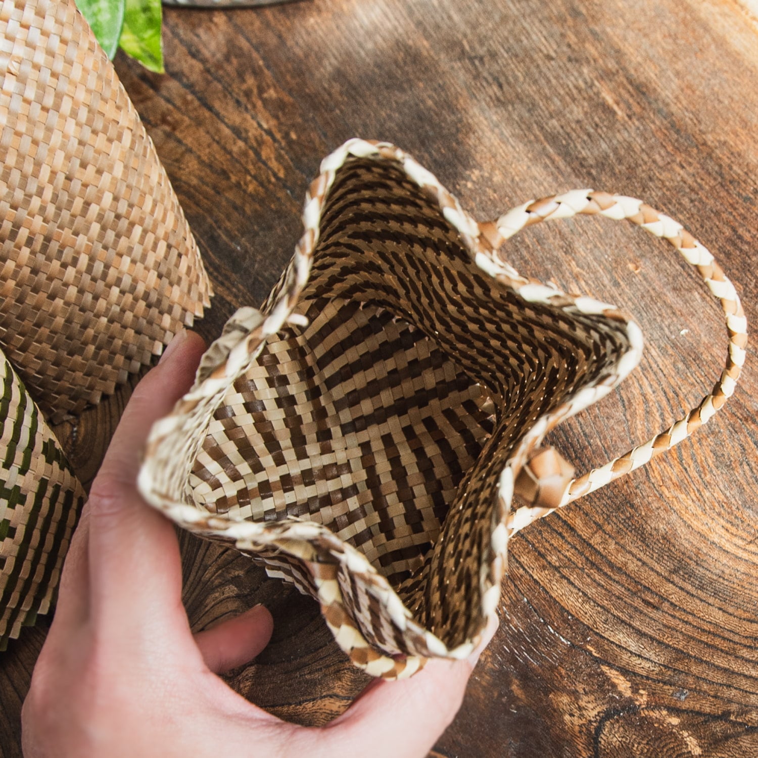 素材に使用されているパンダンリーフは、東南アジアを中心に自生する植物で、軽くて丈夫、通気性や防腐性にも優れており、古くから暮らしの道具として重宝されてきました。特にインドネシアでは、伝統的な技術を受け継ぐ編み職人が多く、自然素材を活かした工芸品づくりが盛んです。■自分用にもギフト用にも