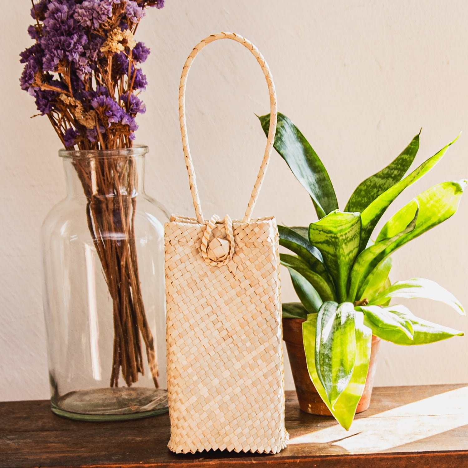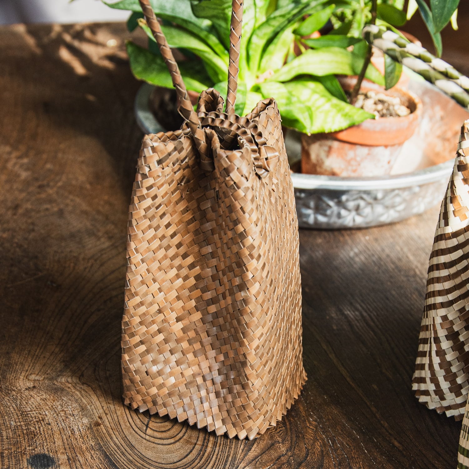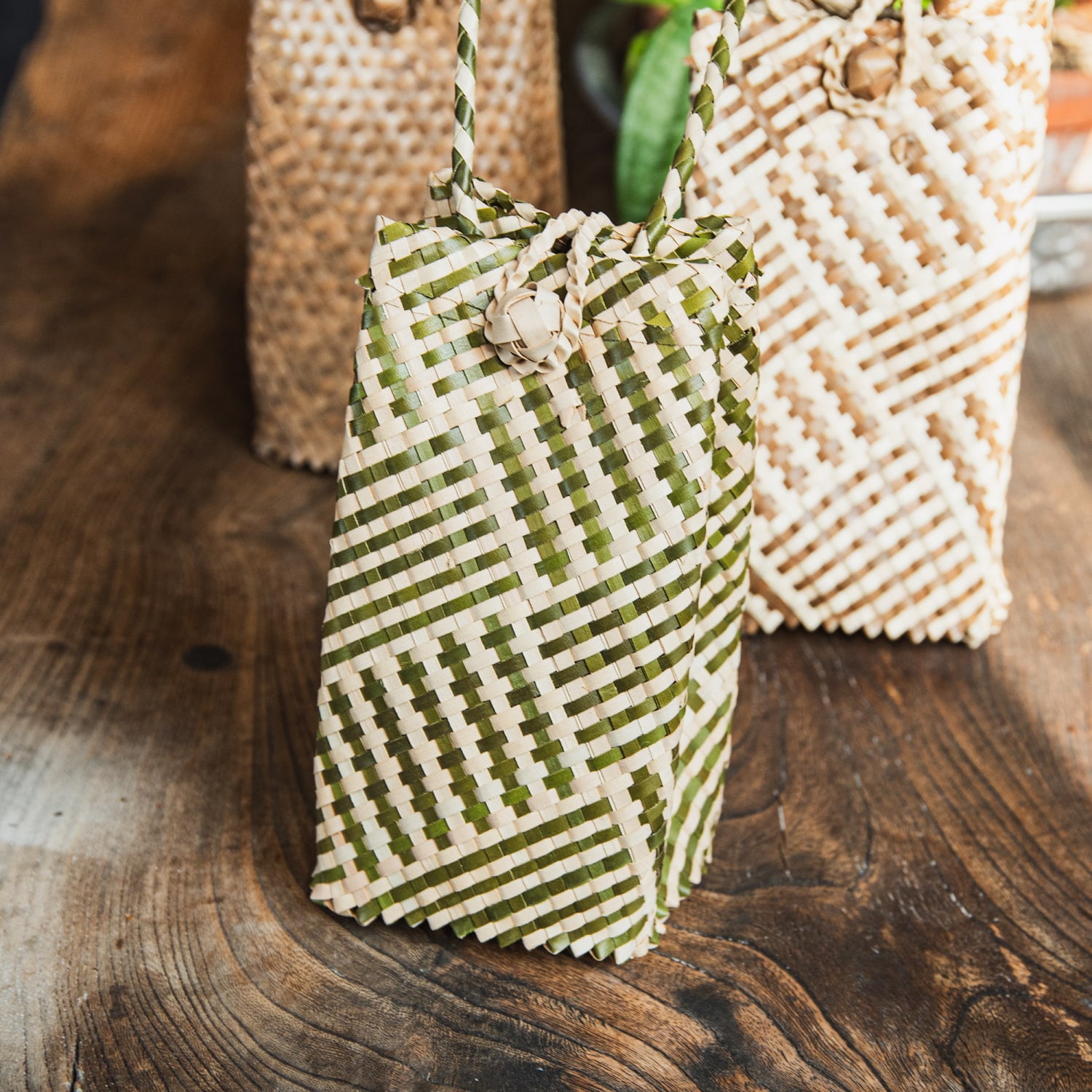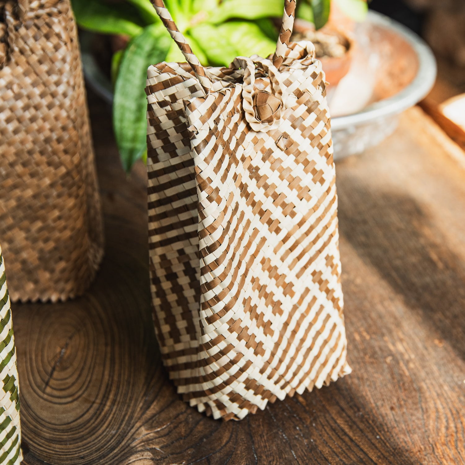素材に使用されているパンダンリーフは、東南アジアを中心に自生する植物で、軽くて丈夫、通気性や防腐性にも優れており、古くから暮らしの道具として重宝されてきました。特にインドネシアでは、伝統的な技術を受け継ぐ編み職人が多く、自然素材を活かした工芸品づくりが盛んです。■自分用にもギフト用にも