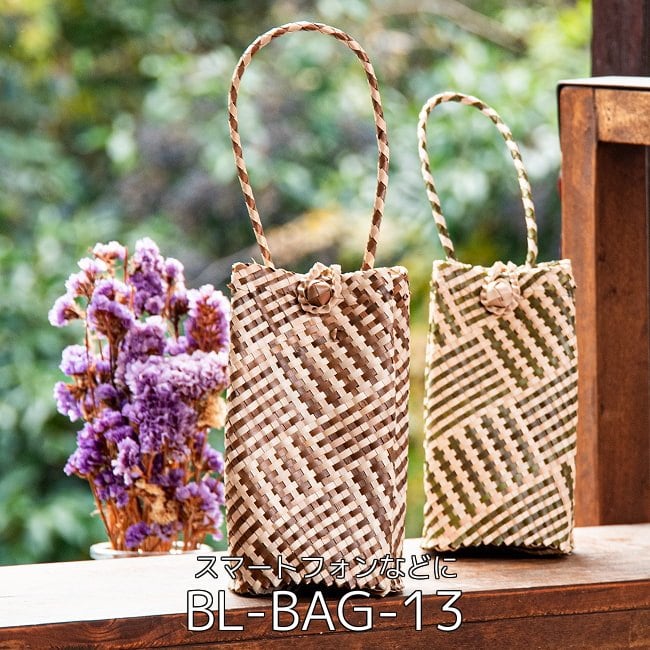 ミニサイズの編みポーチ 天然素材パンダンリーフ製 スマートフォンなどに(BL-BAG-13)の写真です