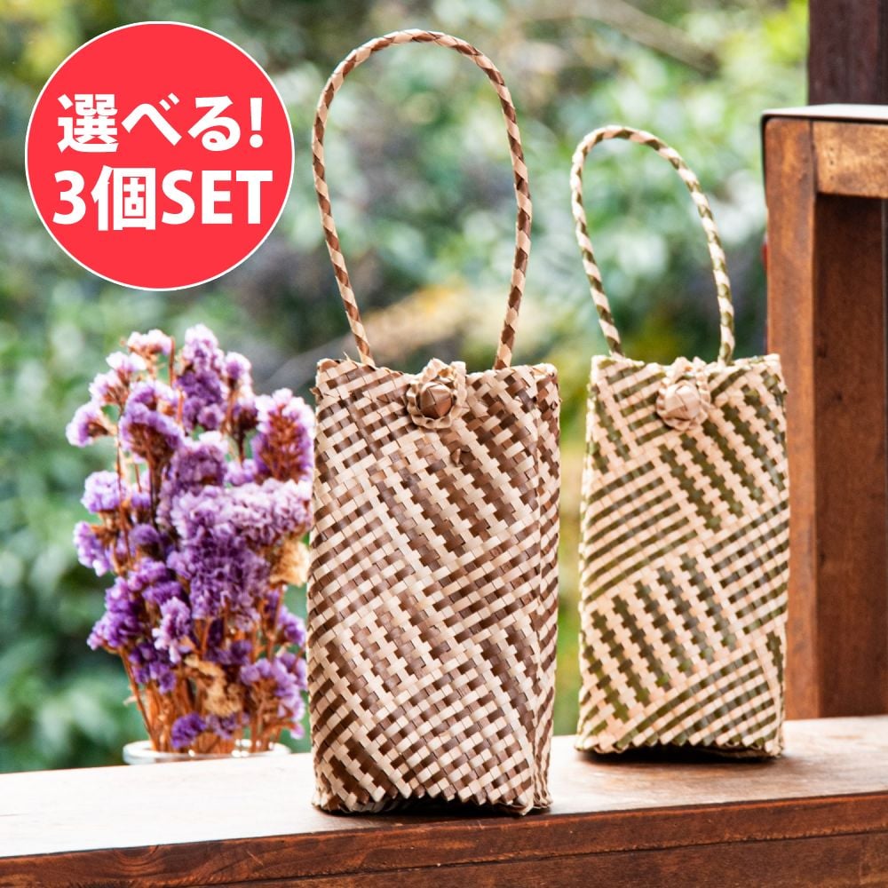 【自由に選べる3個セット】ミニサイズの編みポーチ 天然素材パンダンリーフ製 スマートフォンなどに 通販店