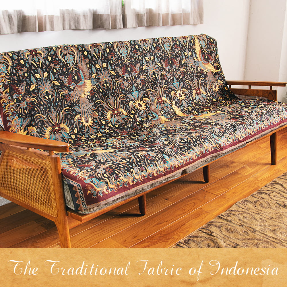 大きさも十分なのでテーブルクロスやソファーカバーへ。他にもカーテンやベットカバーとして、アジアンなベビースリングの材料としてなどなど、アイデア次第でいろいろご利用いただけます。