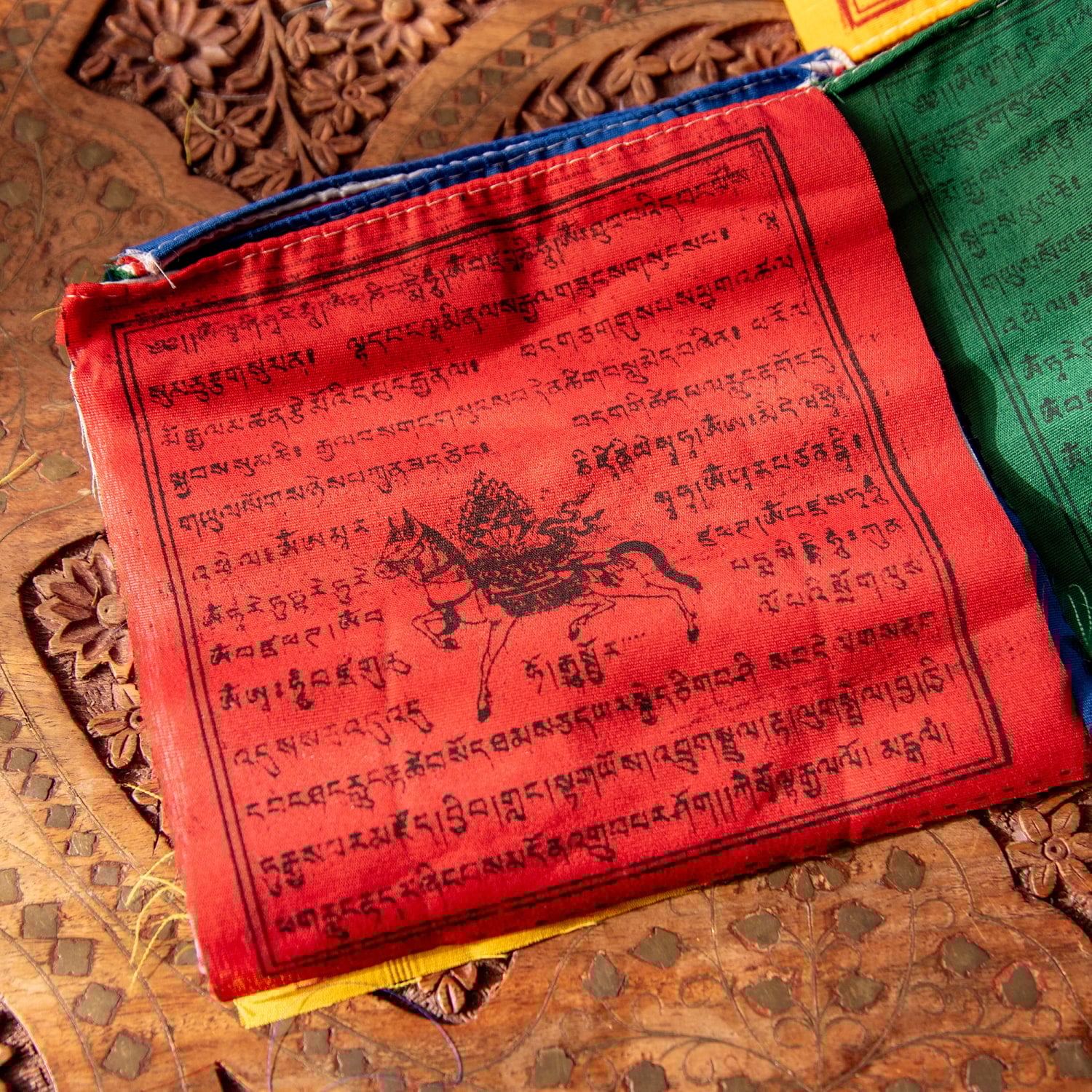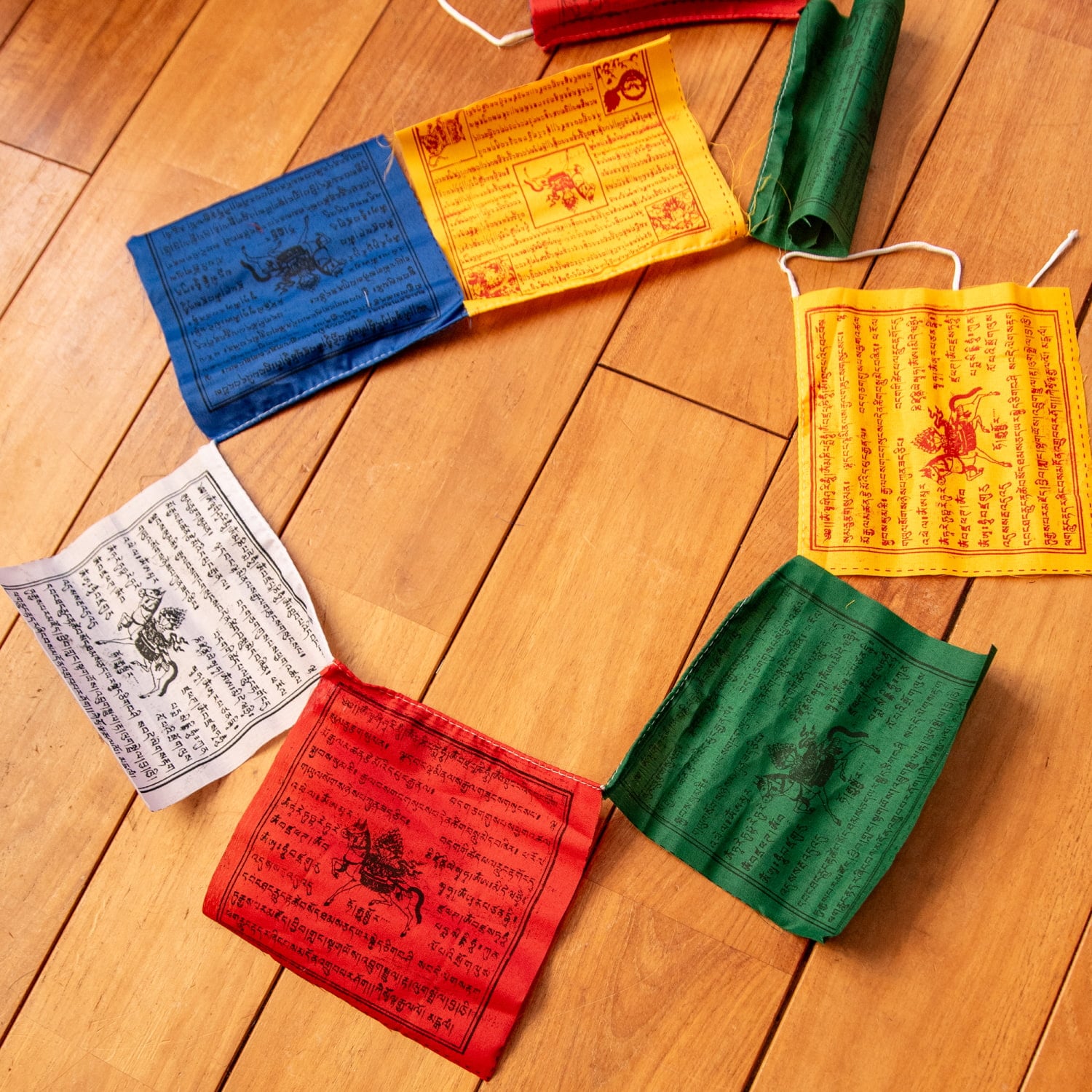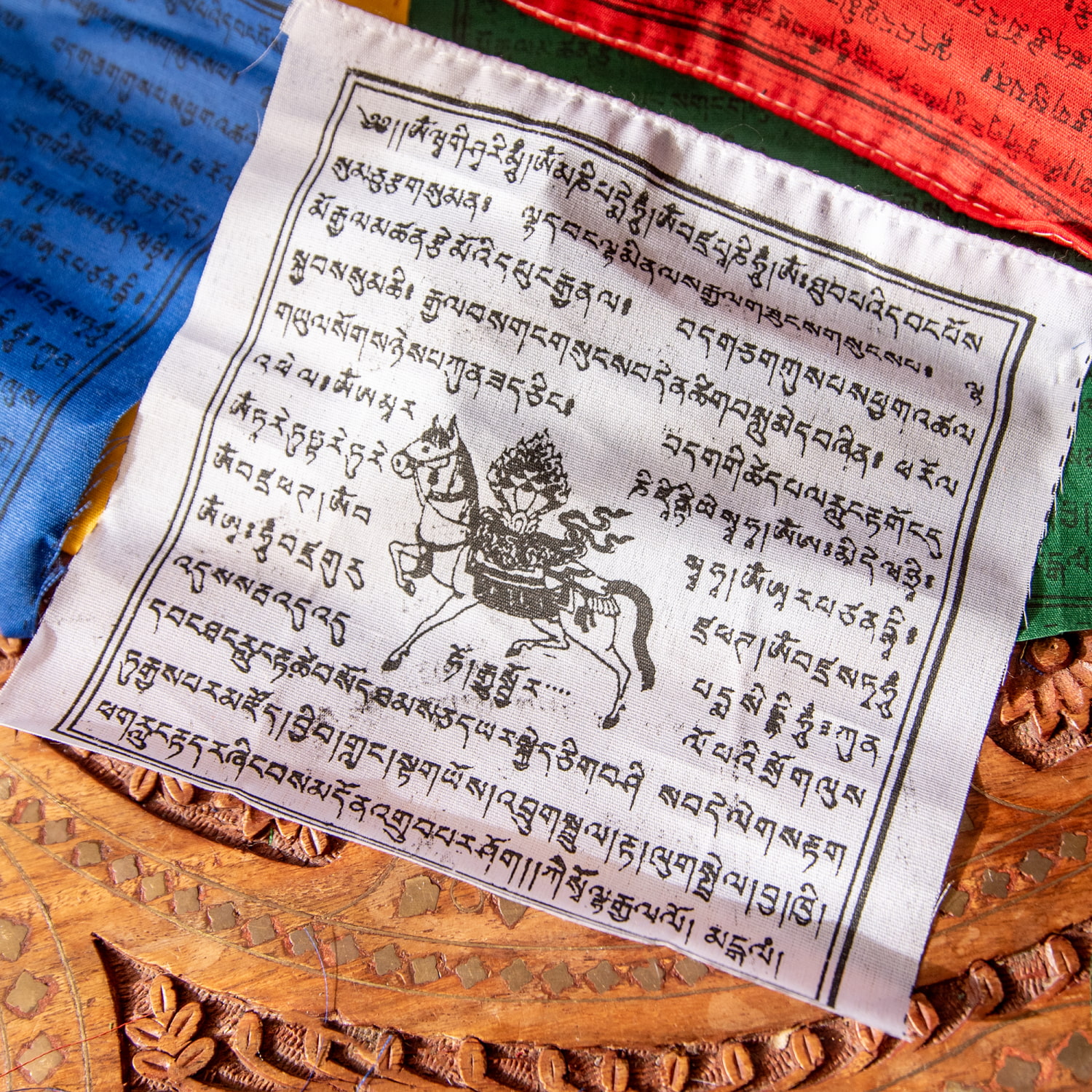 一枚一枚にチベット語の祈りの言葉、馬のプリントがしてあります。