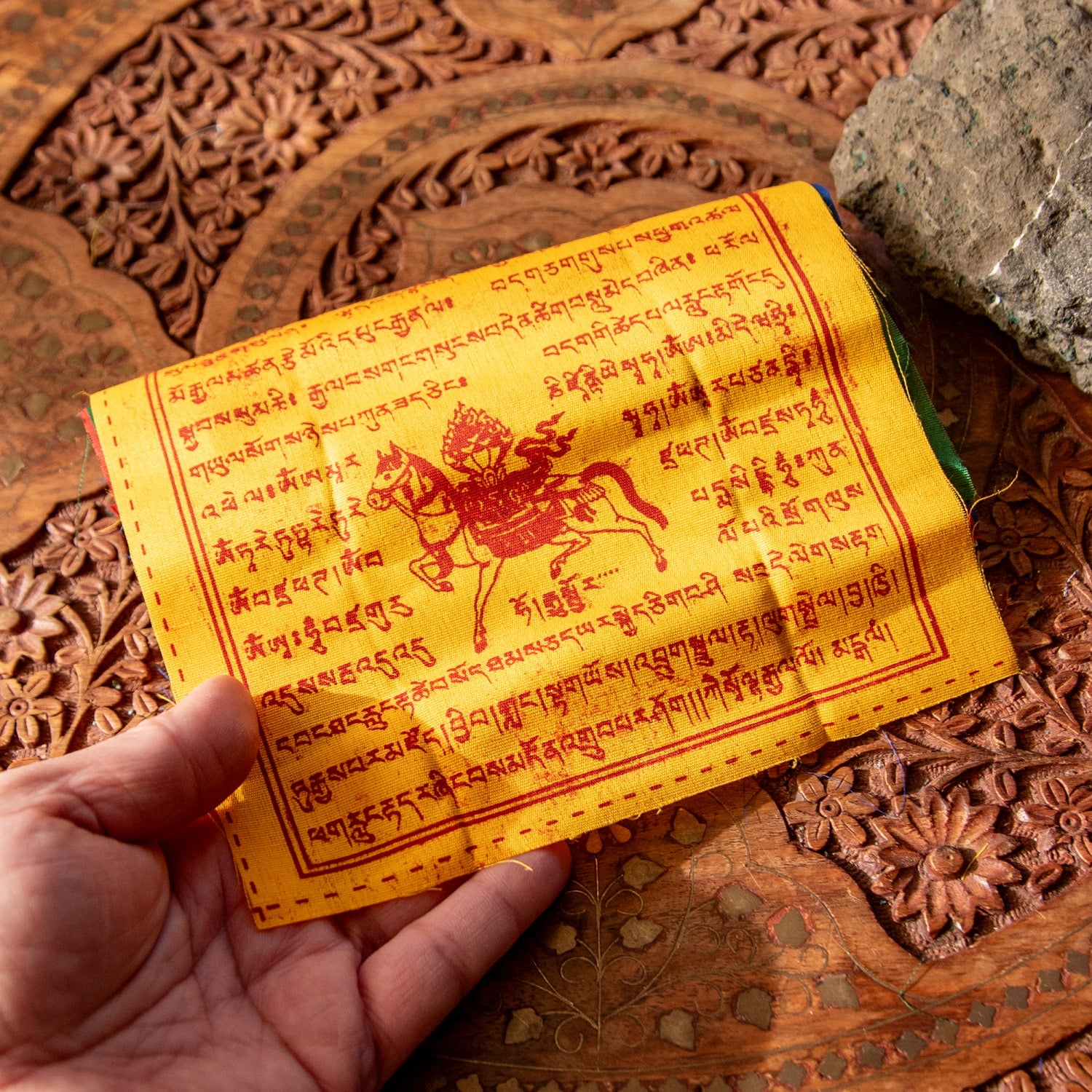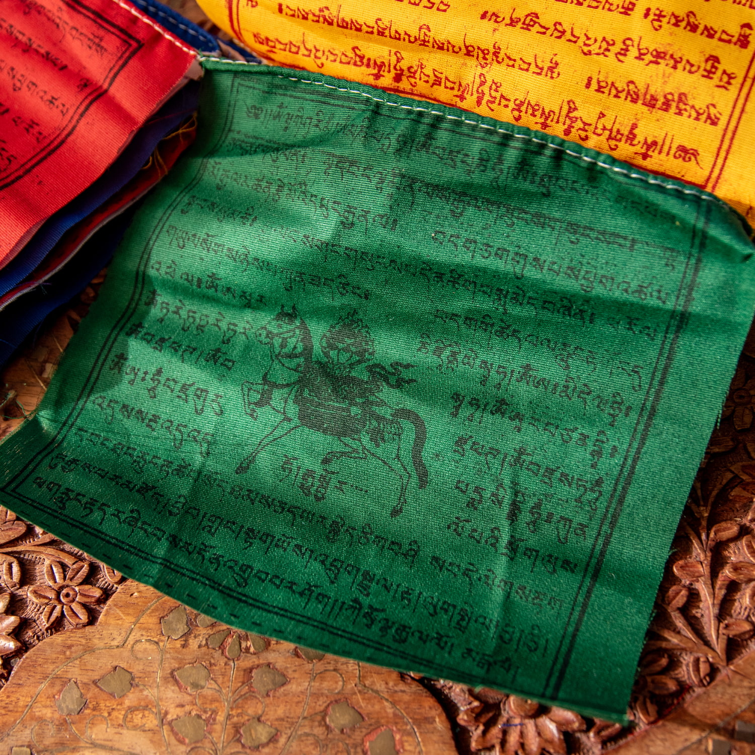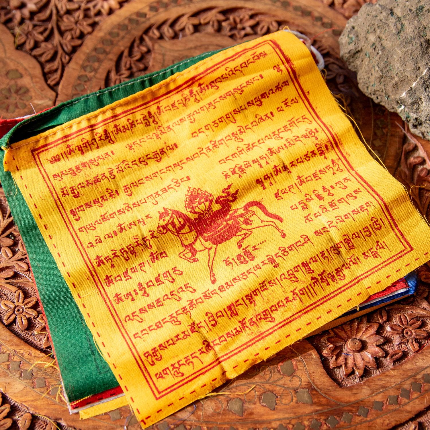 一枚一枚にチベット語の祈りの言葉、馬のプリントがしてあります。
