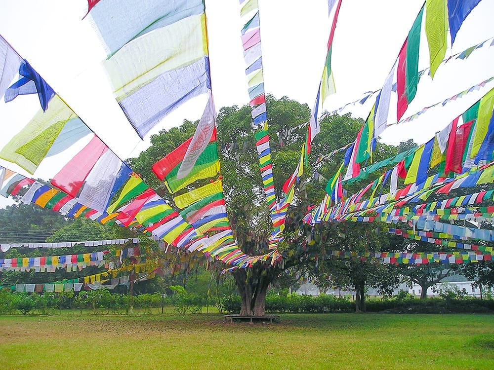 チベットやネパール、北インド地方等で、その特徴的な風景の中でも一際目を引く、タルチョーと呼ばれる5色の旗があります。このタルチョーには経文が書かれており、この旗を飾り、それが風になびく度に、読経したことになるのだそうです。