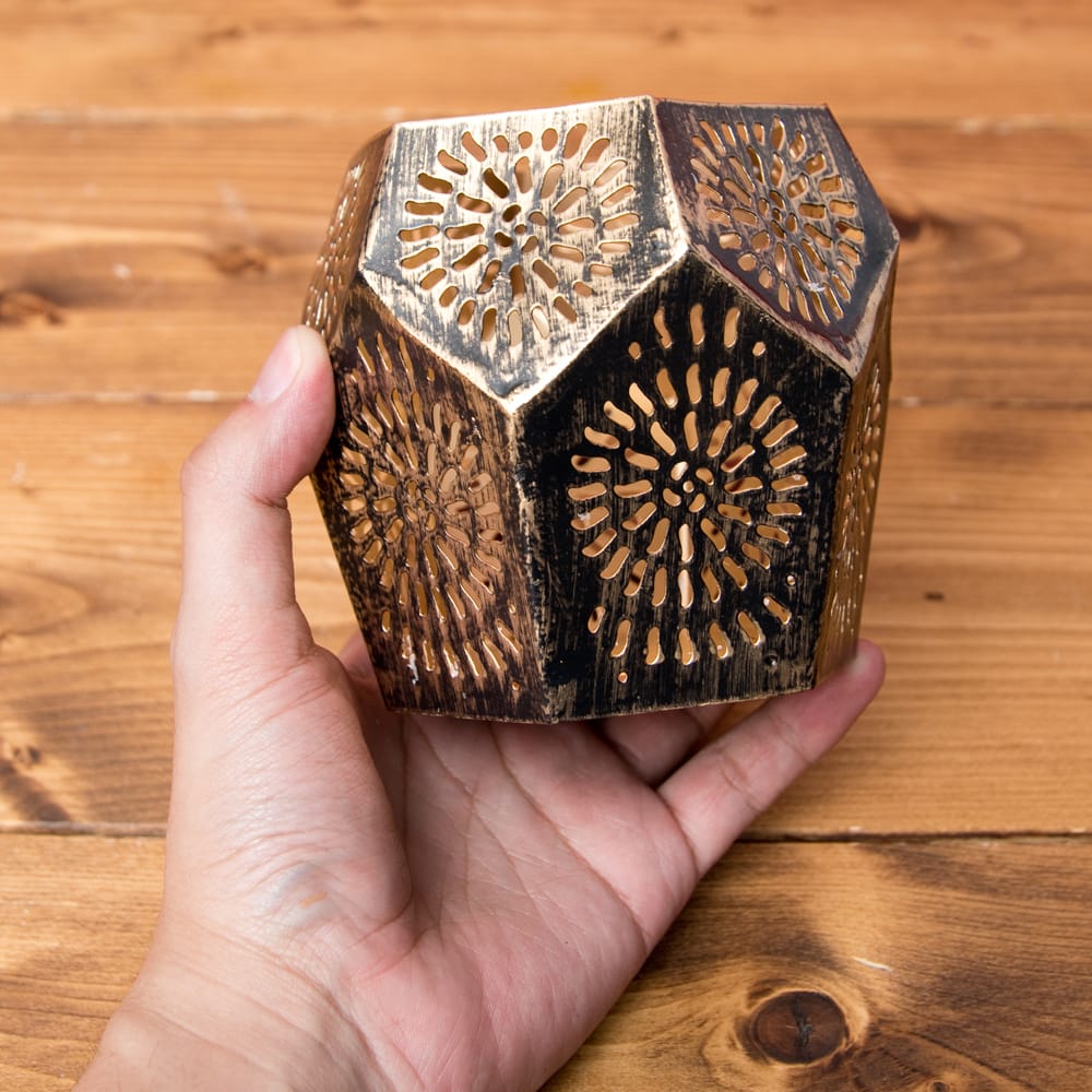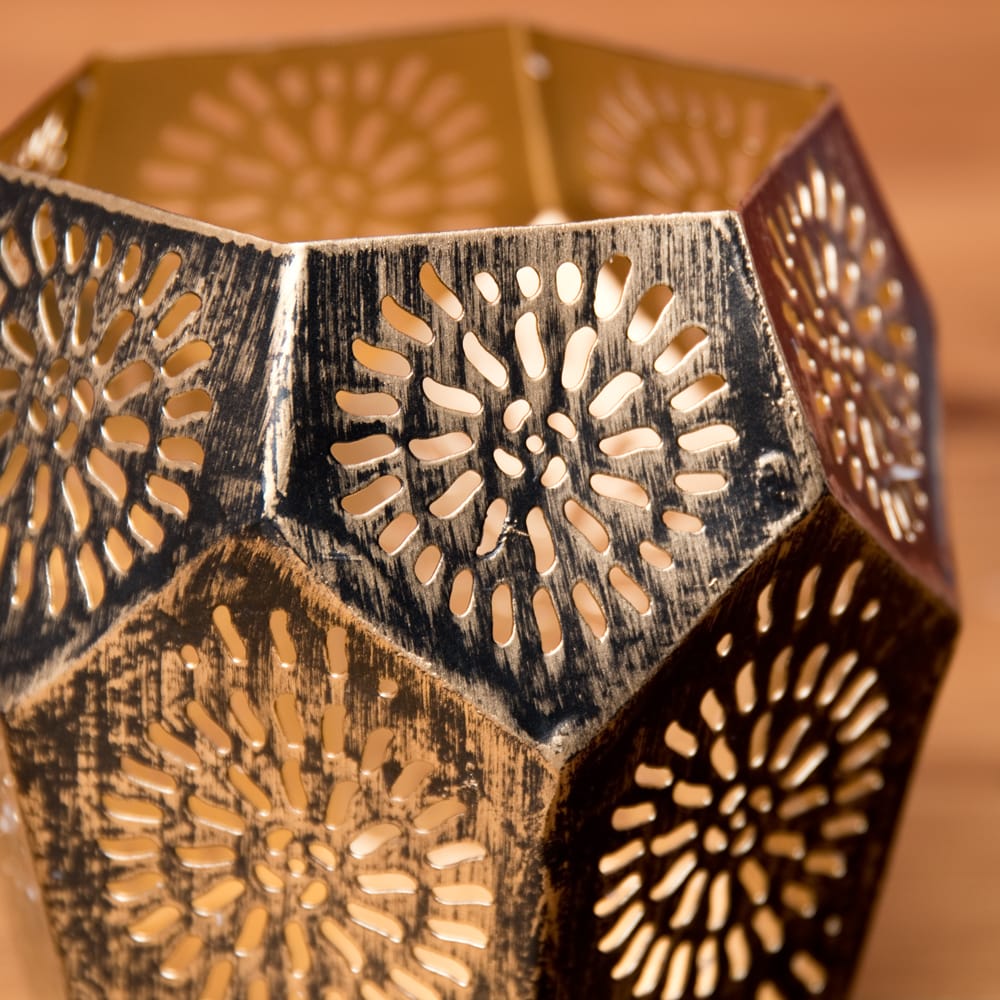 ![【6個セット】幾何学模様の透かし彫りが美しいマンダラランプ[六角形 高さ:10cm] 2 - インドから素晴らしいキャンドルスタンドが届きました。切子細工から溢れる灯りが美しく幻想的です。](https://www.tirakita.com/id_lamp/Photos/set_gene_116_2b.jpg)