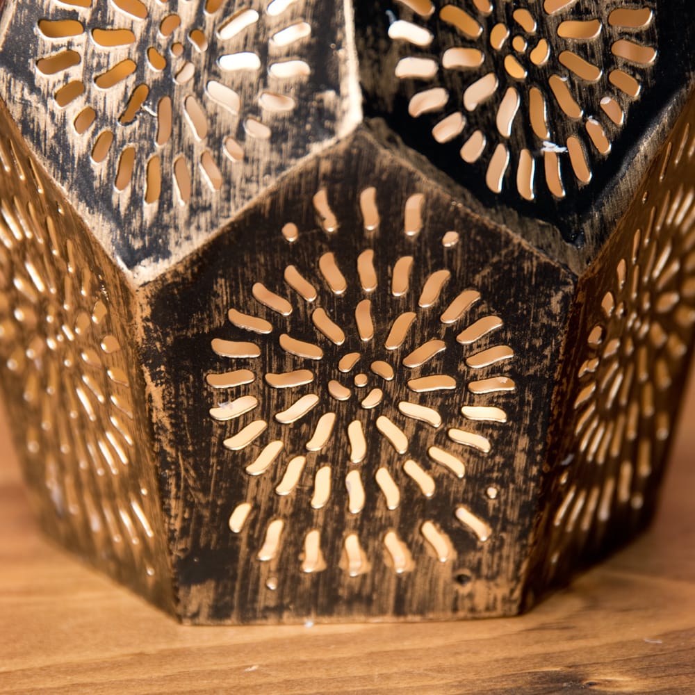 幾何学模様の透かし彫りが美しいマンダラランプ[六角形 高さ:10cm] x 6個
