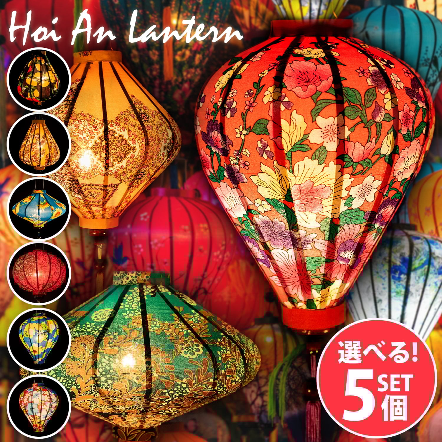 【自由に選べる5個セット】華やかな柄入り ベトナム伝統のホイアン・ランタン〔提灯〕 通販店