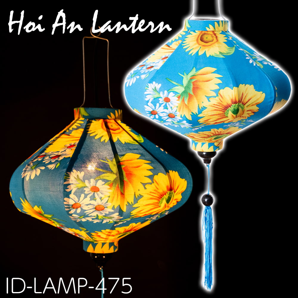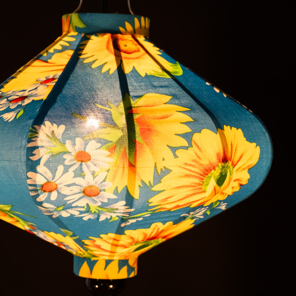 【3個セット】華やかな柄入り ベトナム伝統のホイアン・ランタン(提灯) - 薄ひし形〔ひまわり模様〕 通販店