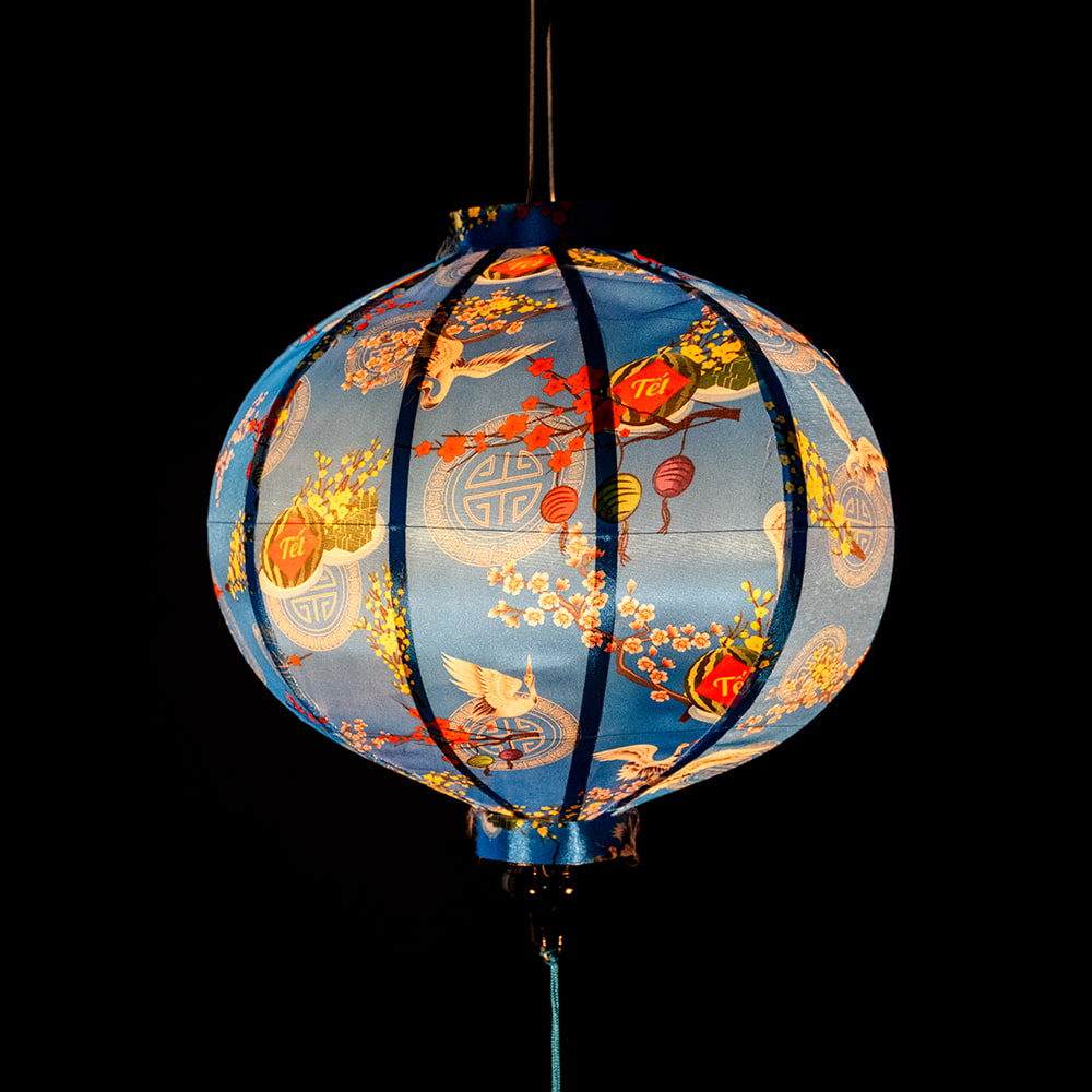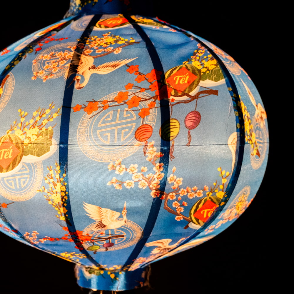 【3個セット】華やかな柄入り ベトナム伝統のホイアン・ランタン(提灯) - 丸型〔テト祝華模様〕 通販店