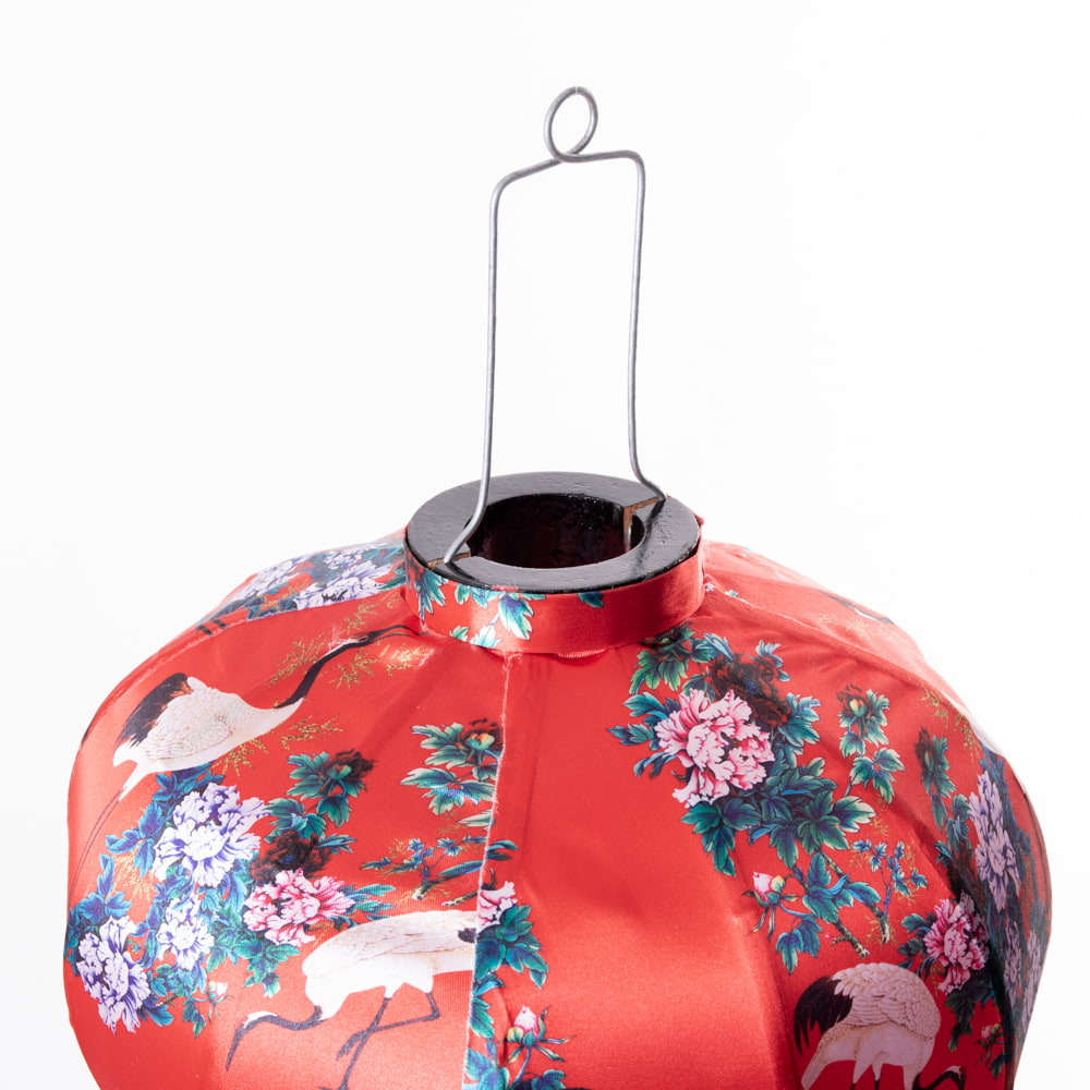 華やかな柄入り ベトナム伝統のホイアン・ランタン(提灯) - 丸型〔鶴と牡丹模様〕 x 3個