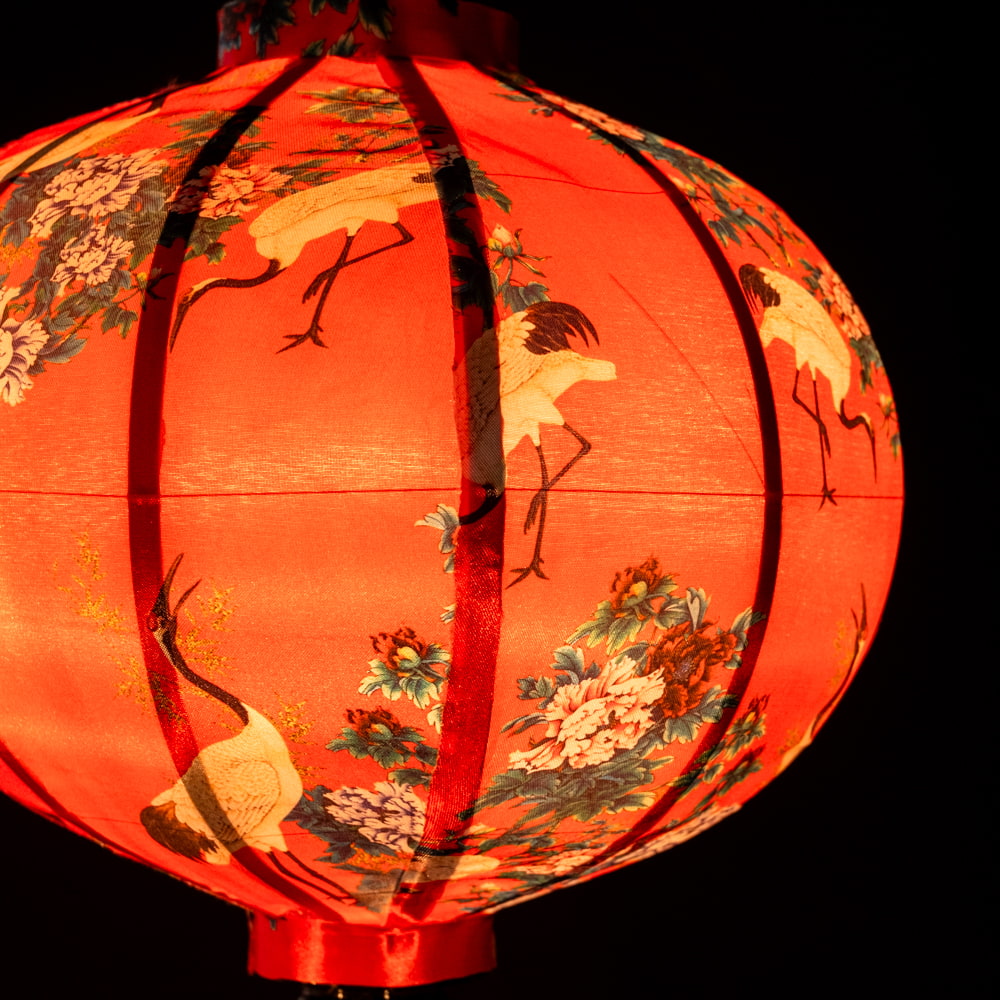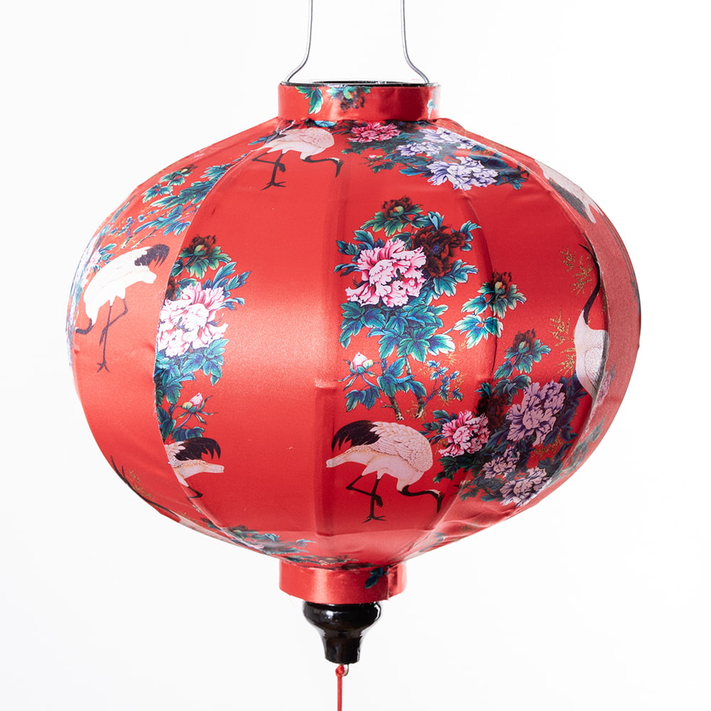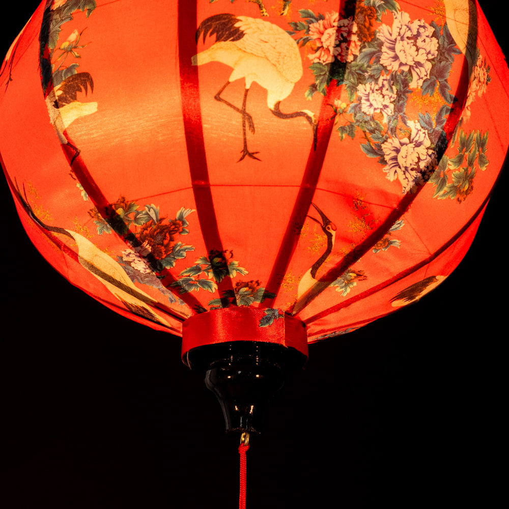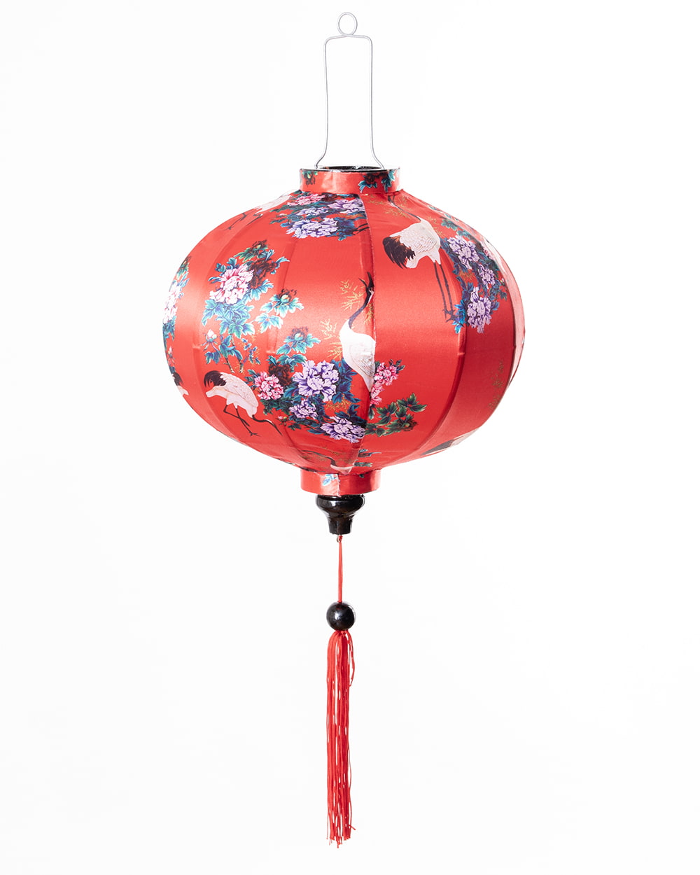 【3個セット】華やかな柄入り ベトナム伝統のホイアン・ランタン(提灯) - 丸型〔鶴と牡丹模様〕 通販店