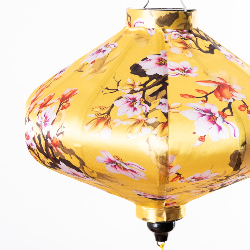 華やかな柄入り ベトナム伝統のホイアン・ランタン(提灯) - 薄ひし形〔木蓮模様〕 x 3個