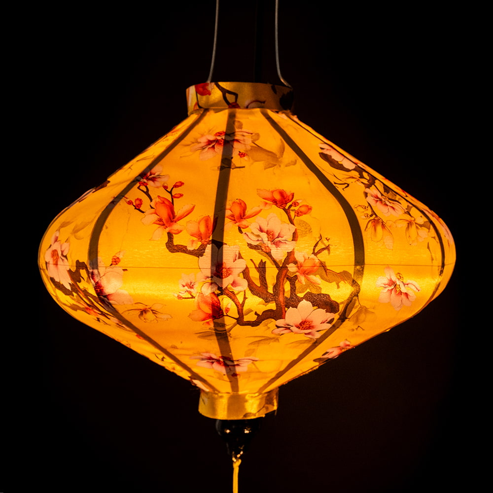 【3個セット】華やかな柄入り ベトナム伝統のホイアン・ランタン(提灯) - 薄ひし形〔木蓮模様〕 通販店