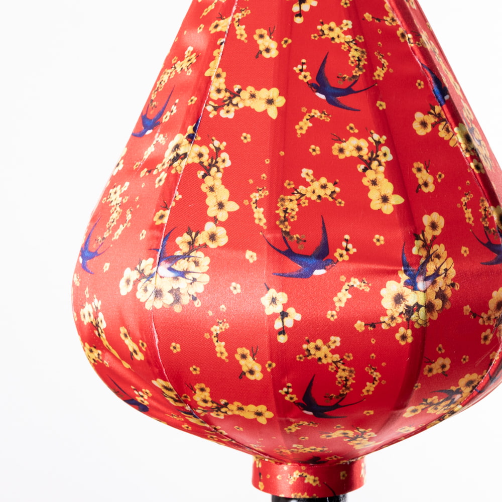 華やかな柄入り ベトナム伝統のホイアン・ランタン〔提灯〕 - ティアドロップ〔燕と黄梅模様〕 x 3個