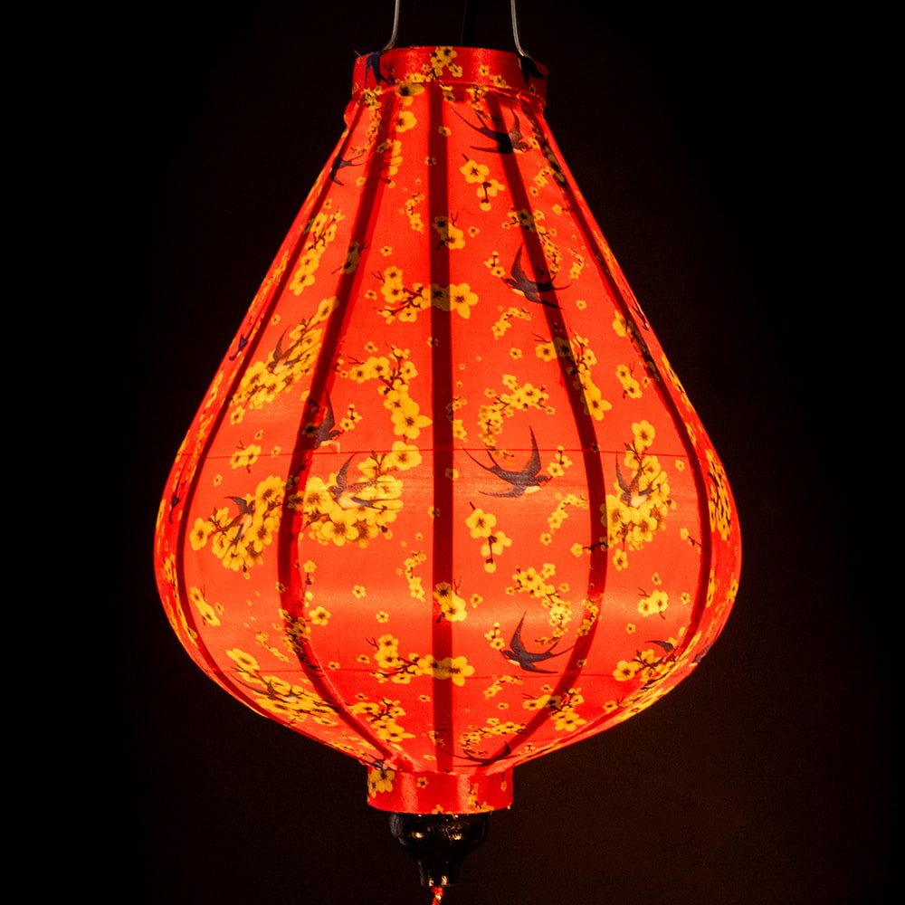 【3個セット】華やかな柄入り ベトナム伝統のホイアン・ランタン〔提灯〕 - ティアドロップ〔燕と黄梅模様〕 通販店