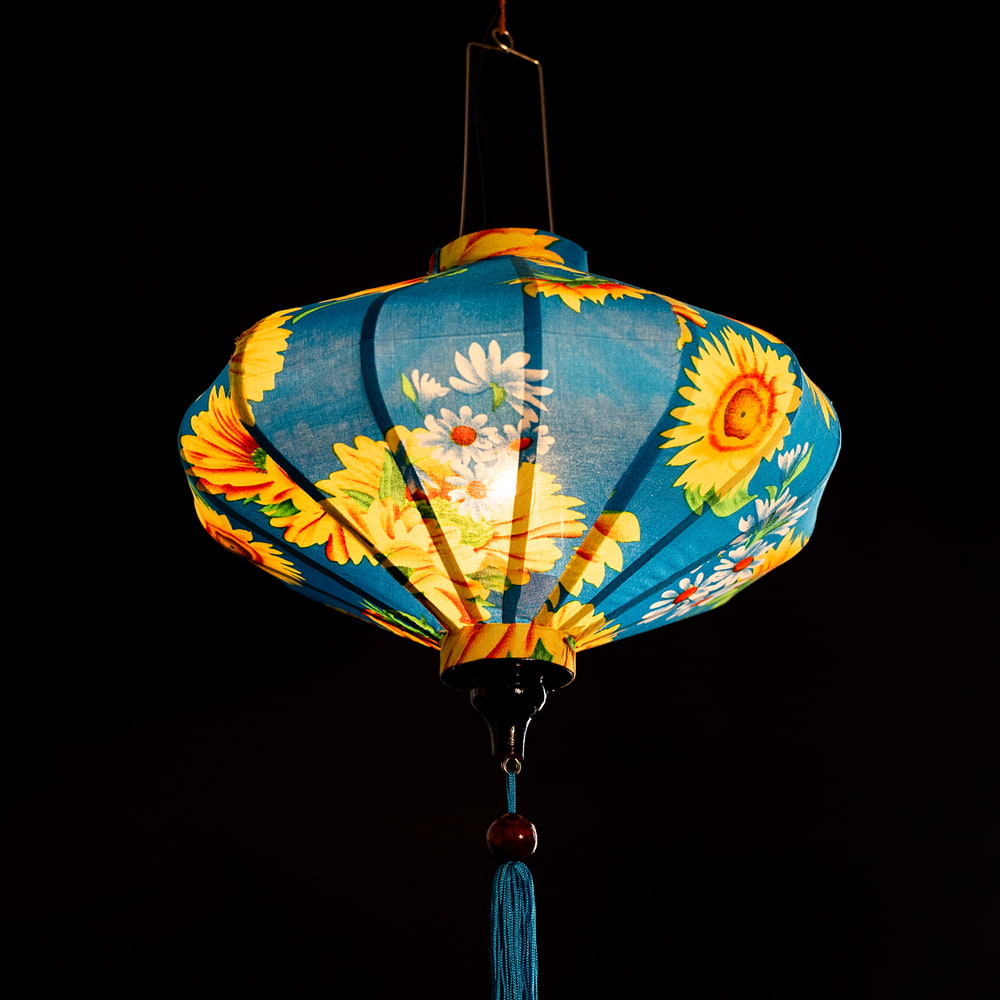 【5個セット】華やかな柄入り ベトナム伝統のホイアン・ランタン(提灯) - 薄ひし形〔向日葵模様〕 通販店