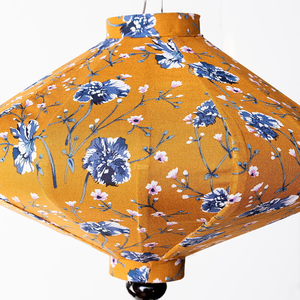 華やかな柄入り ベトナム伝統のホイアン・ランタン(提灯) - 薄ひし形〔更紗模様〕 x 5個