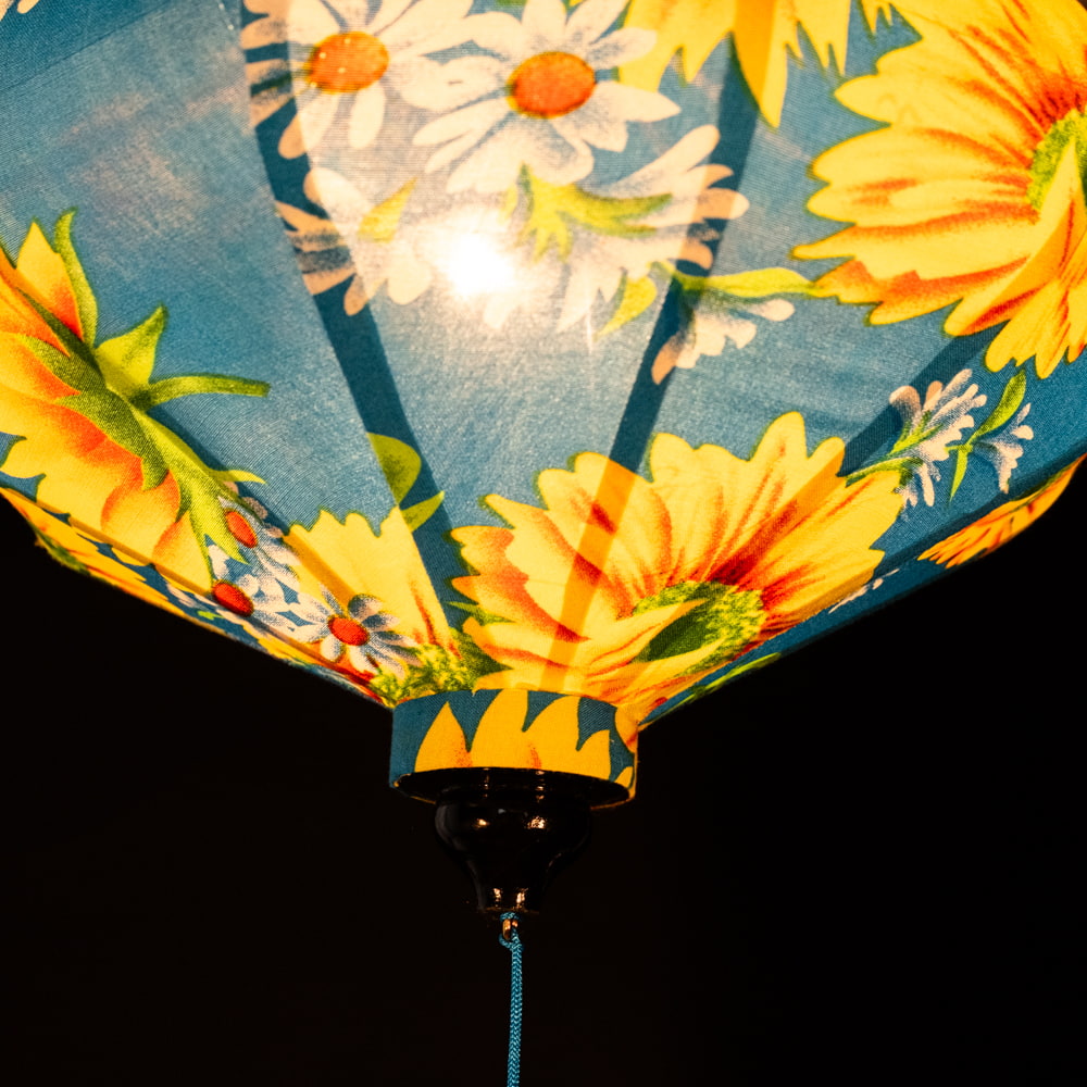 【5個セット】華やかな柄入り ベトナム伝統のホイアン・ランタン(提灯) - 薄ひし形〔ひまわり模様〕 通販店