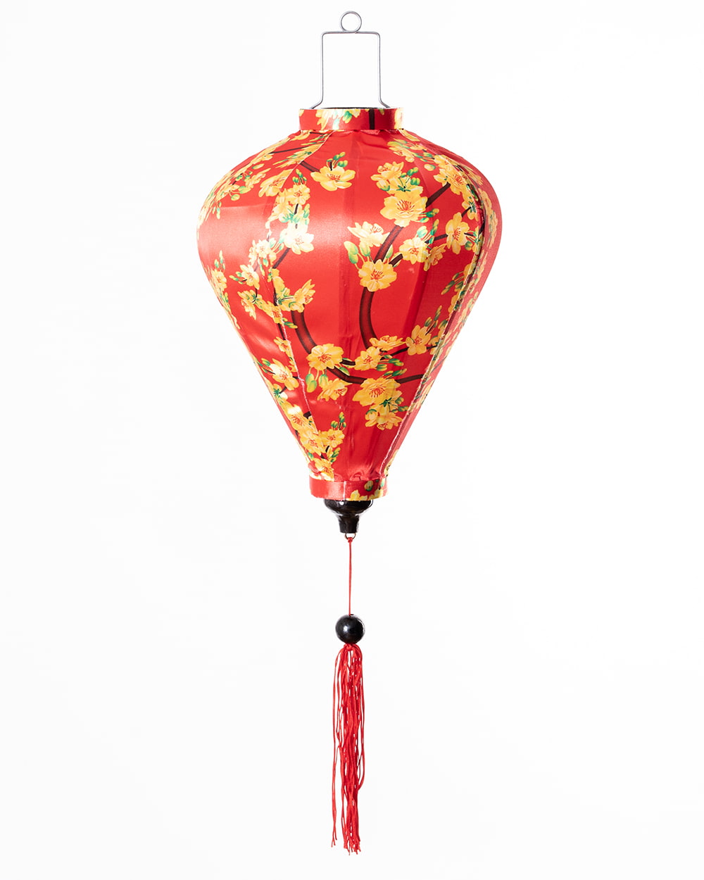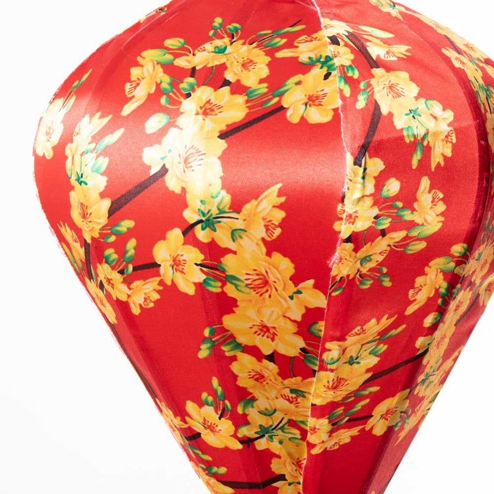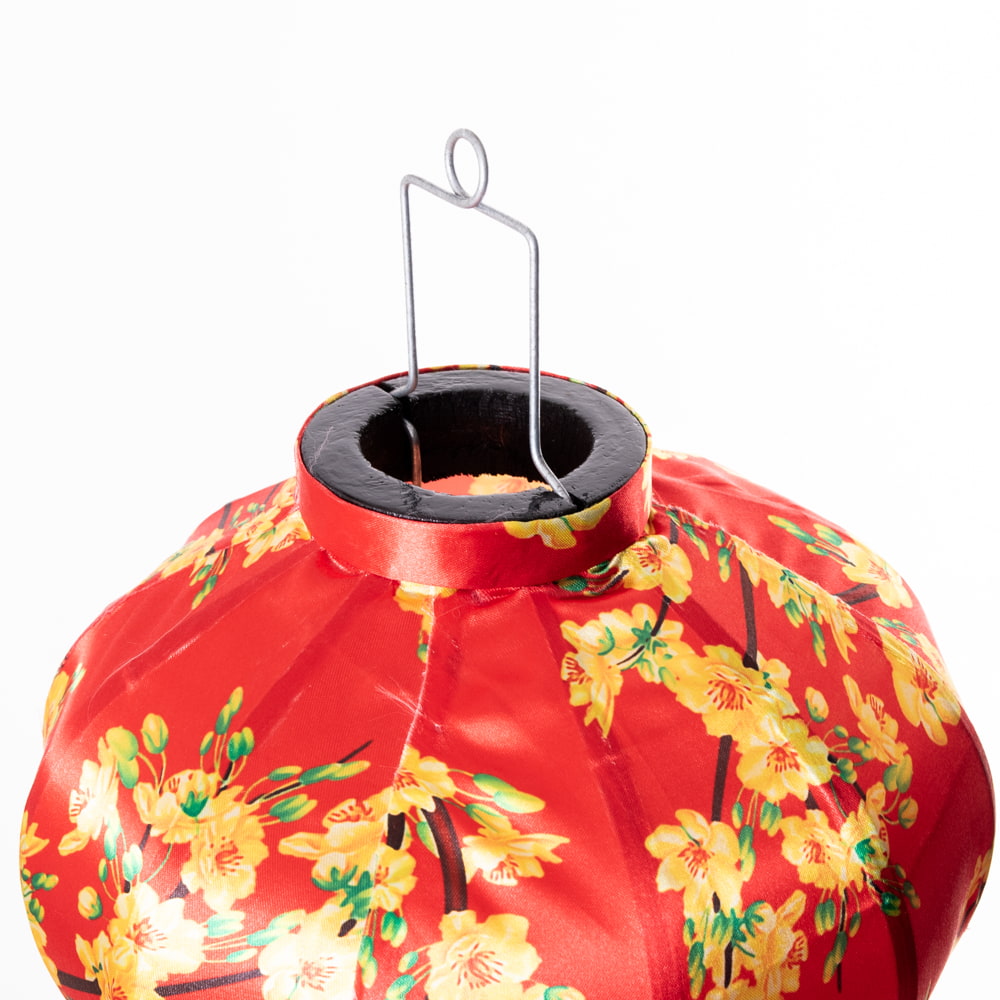 華やかな柄入り ベトナム伝統のホイアン・ランタン〔提灯〕 - ほおずき型〔黄梅模様〕 x 5個