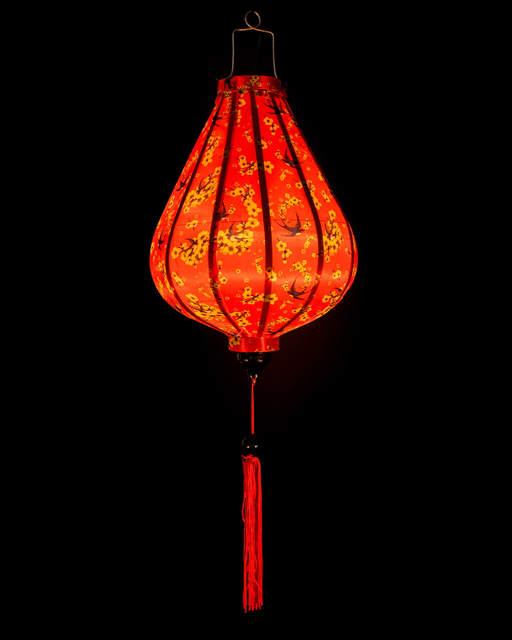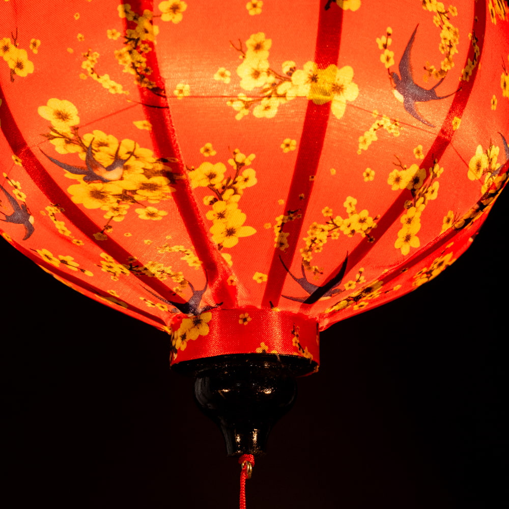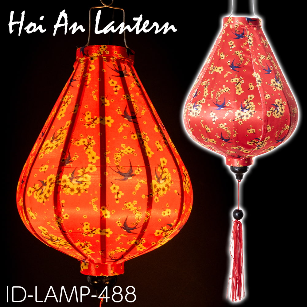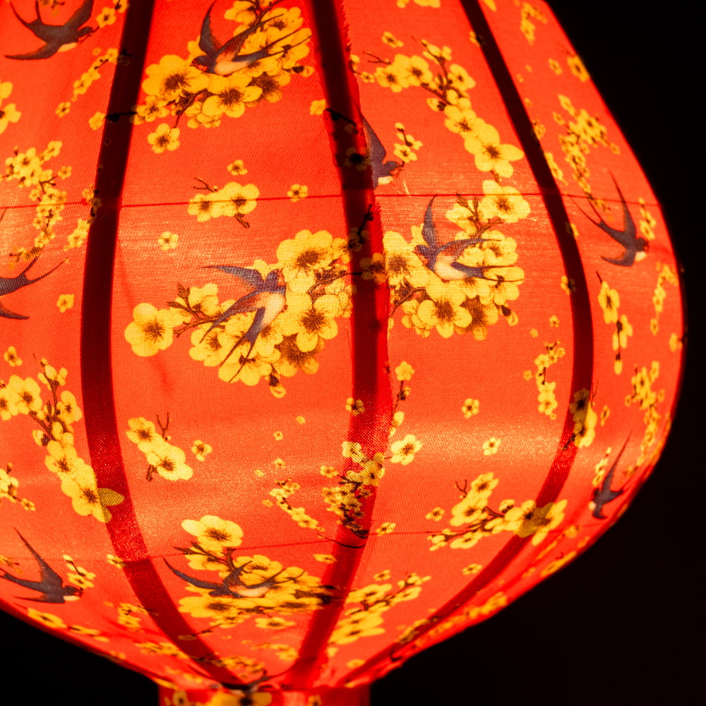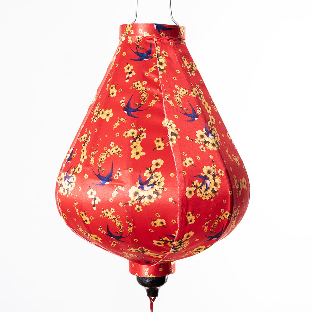 【5個セット】華やかな柄入り ベトナム伝統のホイアン・ランタン〔提灯〕 - ティアドロップ〔燕と黄梅模様〕 通販店
