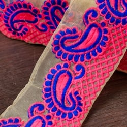 透け素材ペイズリー柄チロリアンテープ(メーター売り・幅約8cm) - ピンク
