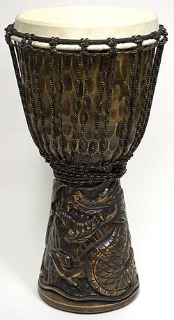 ドラゴン彫刻ジャンベ (高さ 60cm 直径 30cm)
