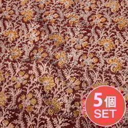 【5個セット】〔1m切単位り売り〕伝統息づく南インドから 昔ながらの木版染め更紗模様布〔約106cm〕 - 赤茶