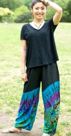 タイダイレーヨンリラックスパンツ 【黒×水色系】