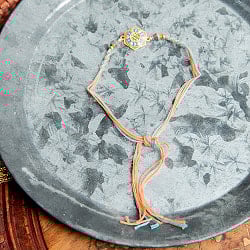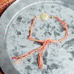 ラーキー - インドの紐ブレスレット六角形 コーラル×水色
