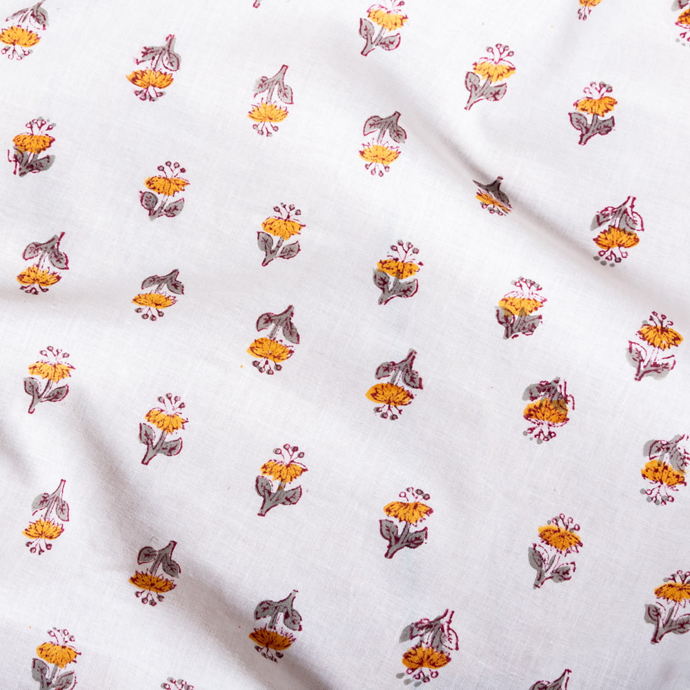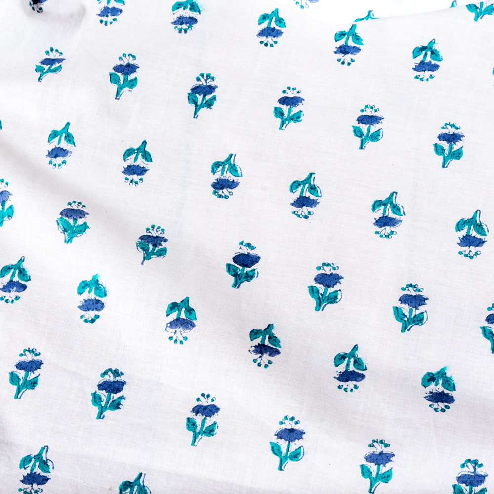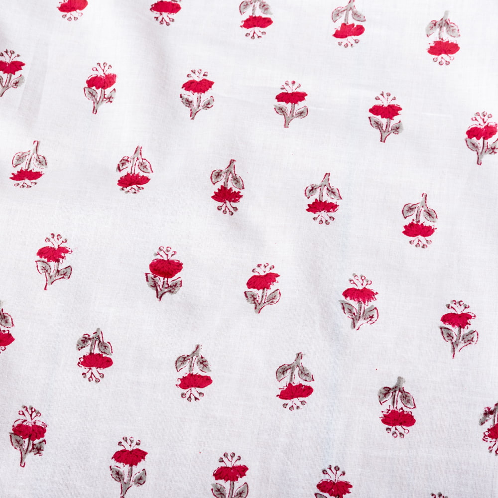 〔1m単位切り売り〕ジャイプル 職人手作り 色彩豊かなボタニカルデザイン おしゃれ 生地 花柄 テーブルクロス 刺繍素材などへ〔幅約108cm〕 - ホワイト系