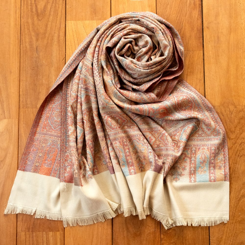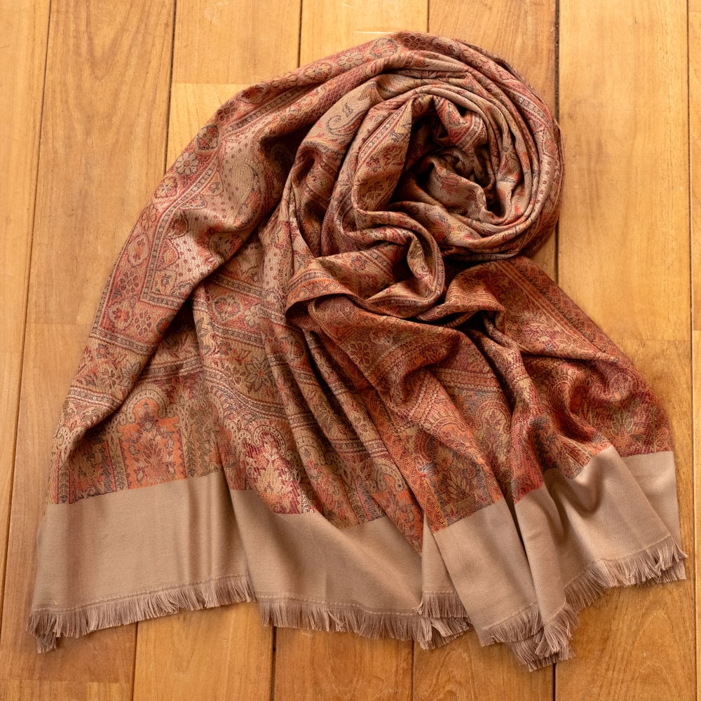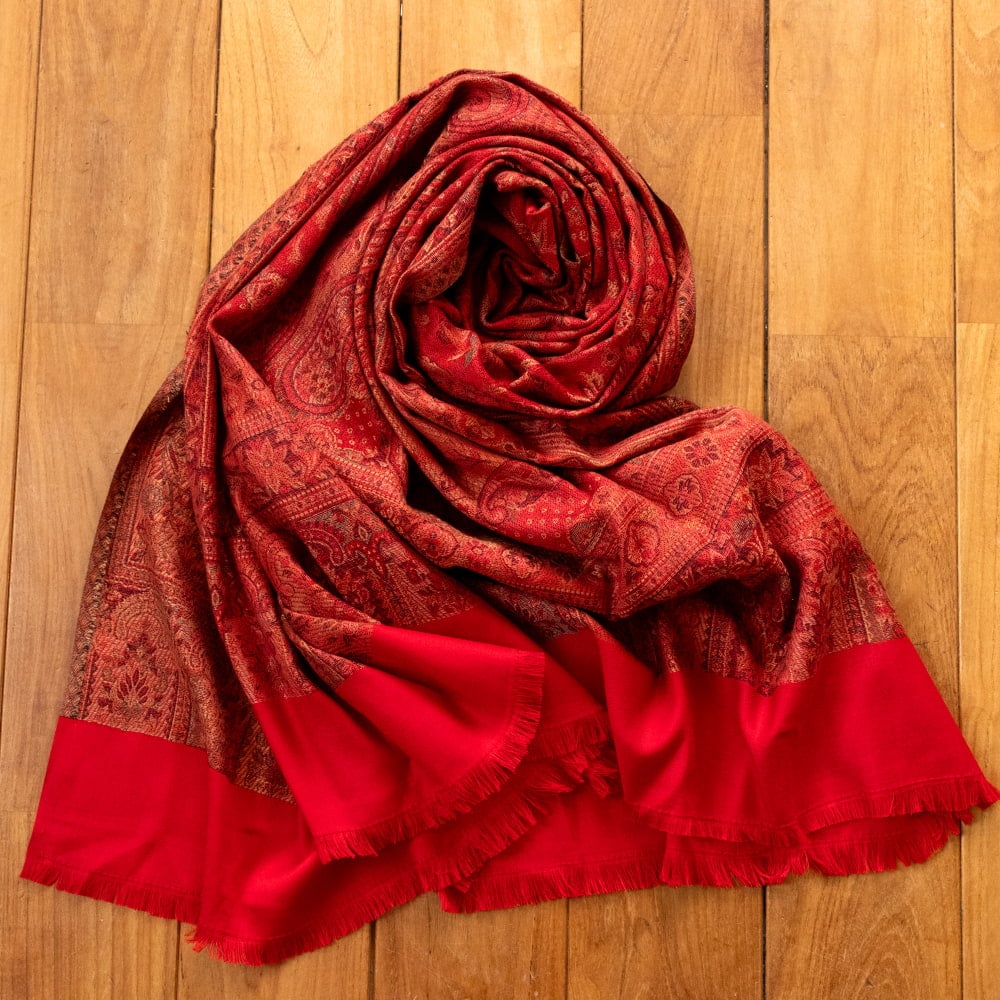 〔各色あり〕滑らかな肌触り インド伝統カシミール ペイズリーの大判ストール・ショール〔約210cm×約110cm〕