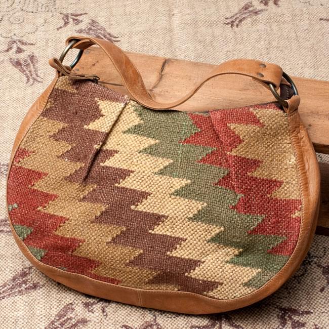 〔一点物〕伝統を紡いだ インドキリムのムーンショルダーバッグ