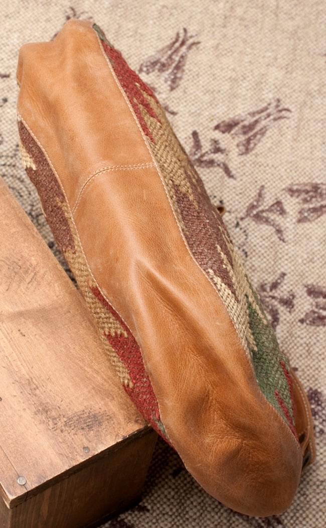 普段使いにぴったりな、インドキリムとレザーで作られた一点物のショルダーバッグです。