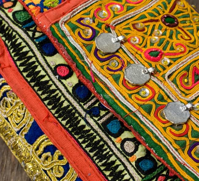 こちらのバッグはアラブ諸国の古布を1枚1枚配置し、パッチワークのようにつなぎ合わせたバッグです。色鮮やかなカラフルな布地に、ビーズやミラーワークがほどこされていたりと、存在感たっぷりのバッグです。古布が1枚1枚職人の手によって合わさり、バッグに生まれ変わる・・・その配色は世界にひとつだけ。まさにどのバッグにもオンリーワンの特別感があります。■アラブ諸国の古布