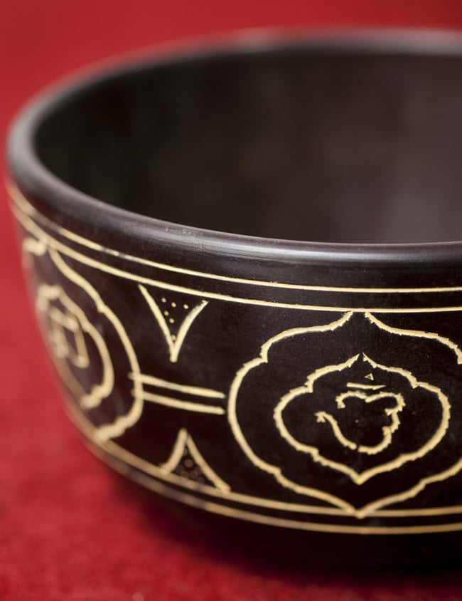 鳴らしやすさに加え特徴的なのが、味わい深い文様です。マントラや、ロータス、ガンター、シュリーヴァスタなどに加え、ブッダなどが美しく彫られています。全ての柄をご覧いただけるよう、写真に収めておりますので、是非御覧くださいませ。音色だけではなく、視覚的にも楽しく癒してくれる一品です。■シンギングボウルの鳴らし方について■