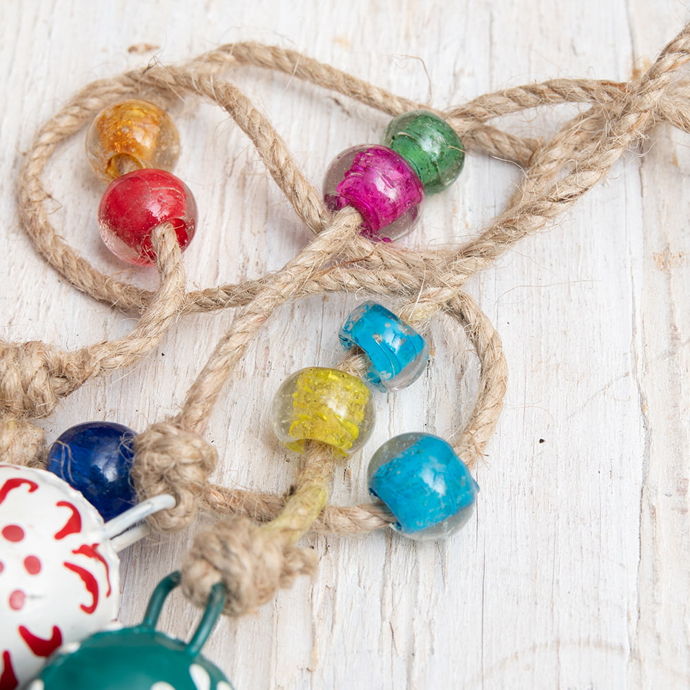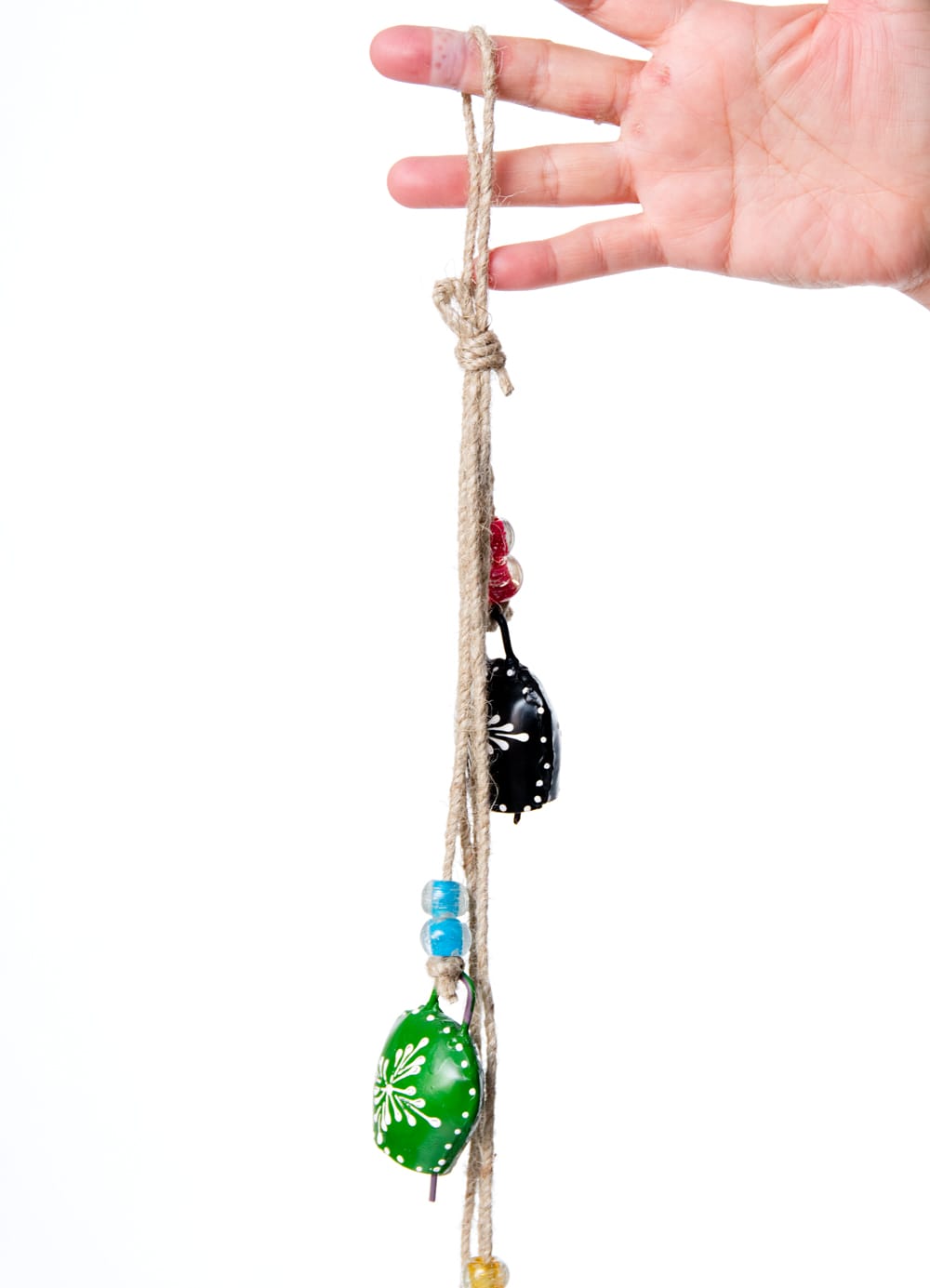 ドアチャイムなどへ!手作りのやさしい音色 インドの銅仕上げカウベル ハンギング - カラフル5連ベル〔約70cm〕 x 4個