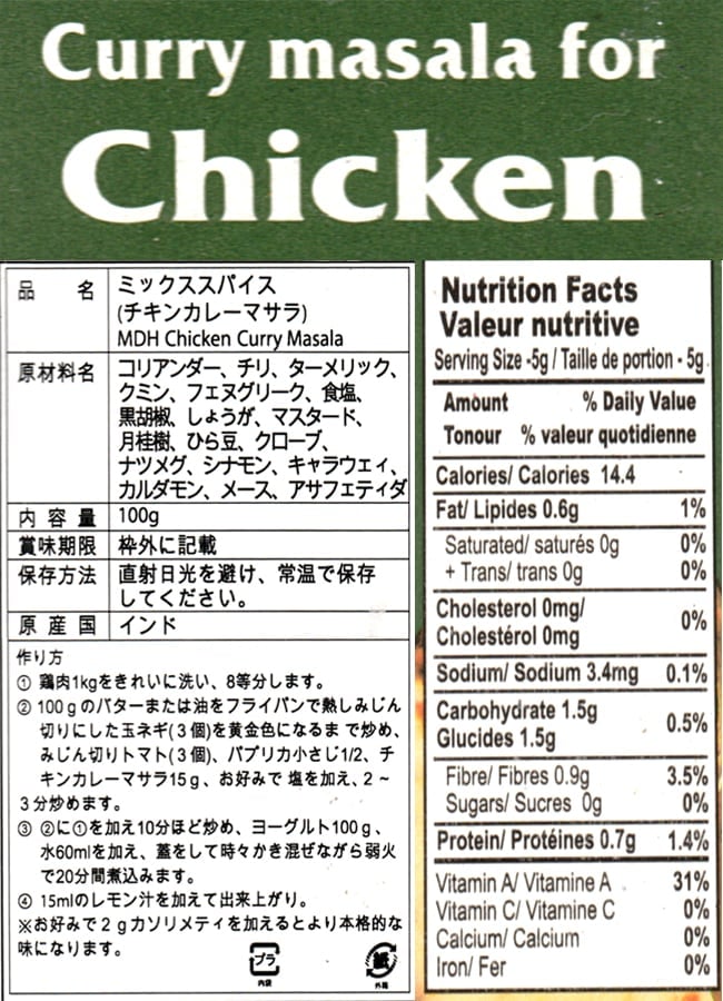 チキンカレー マサラ スパイス ミックス - 100g 小サイズ 【MDH】 x 12個