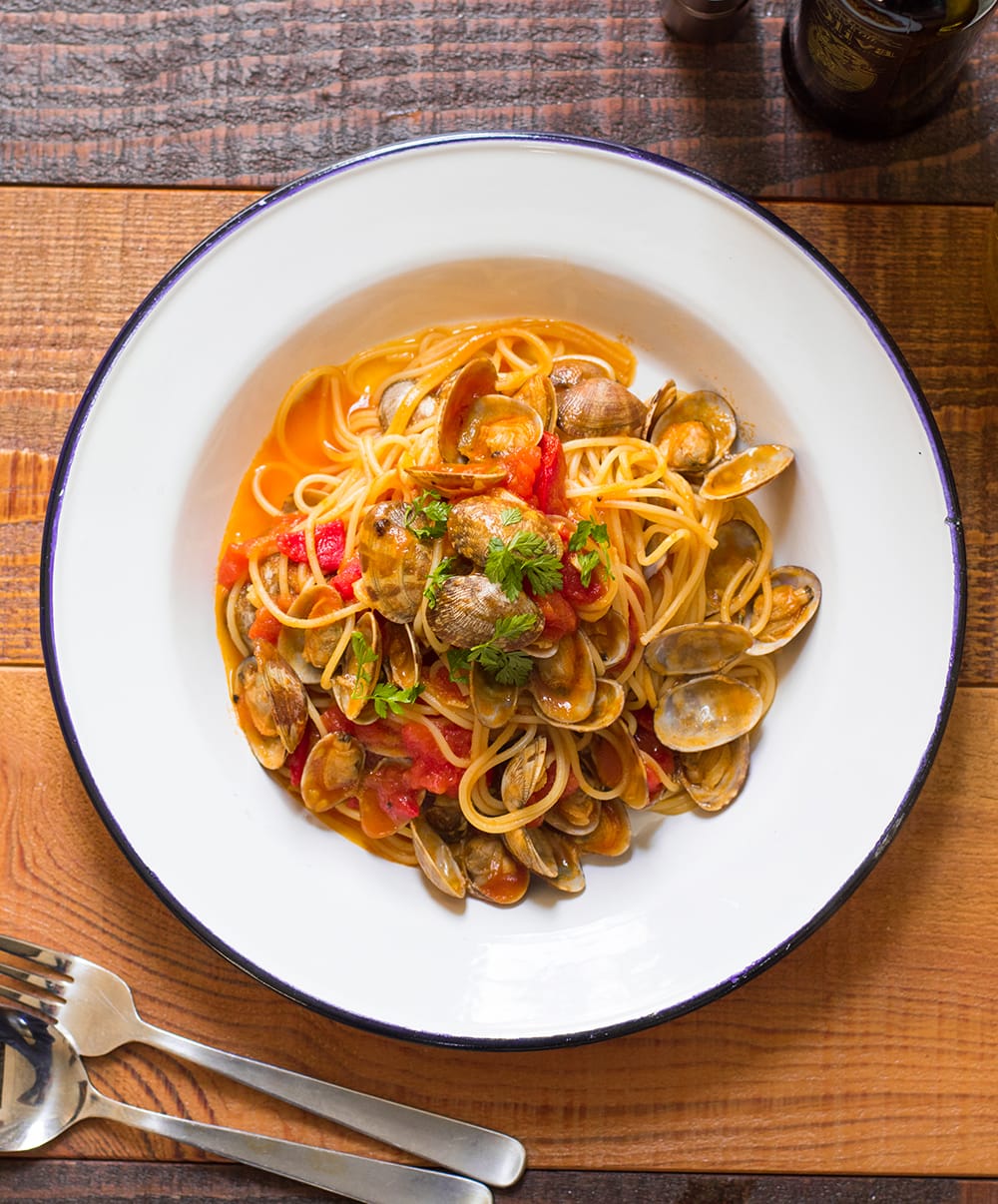 パスタを盛り付けるのにちょうど良いサイズのプレートです。カレーライスをサーブしたりするのにも素敵ですね!