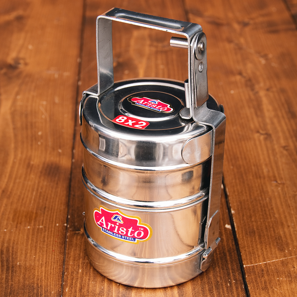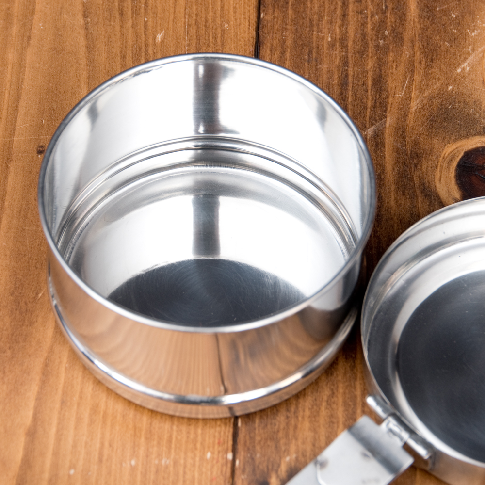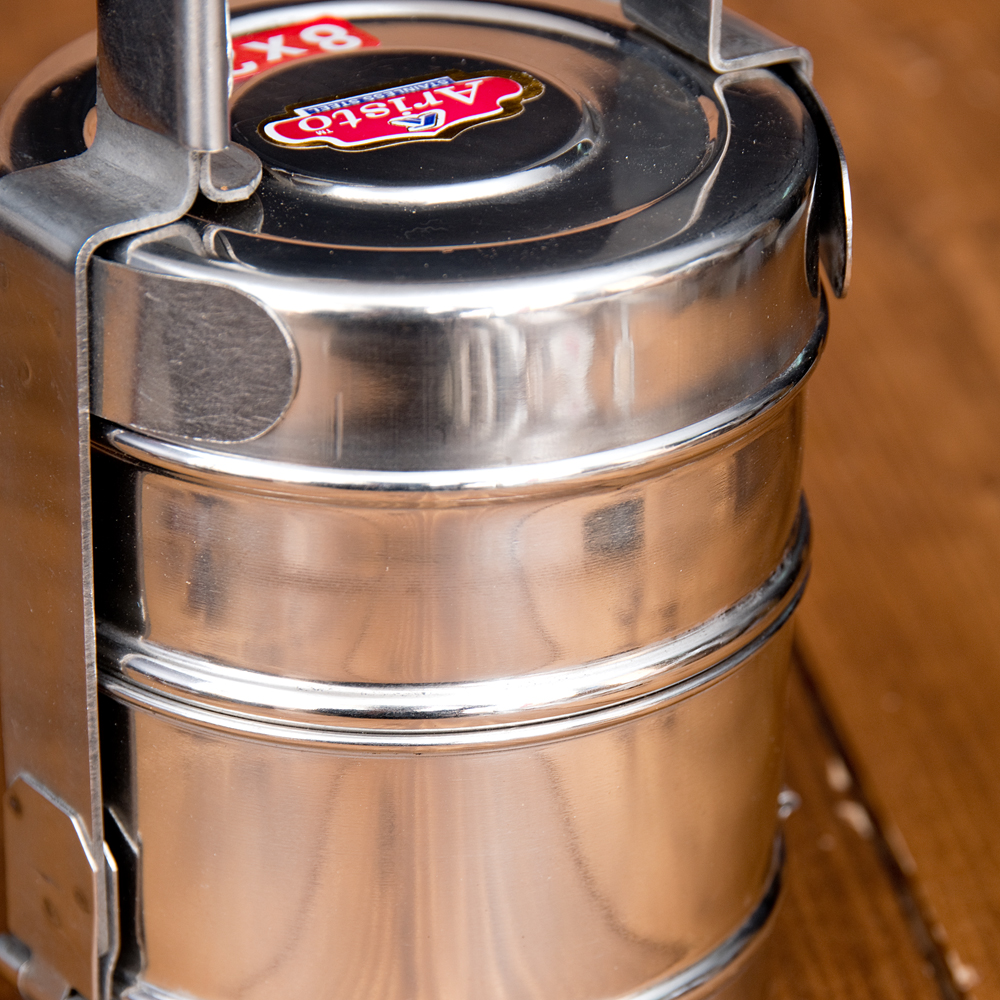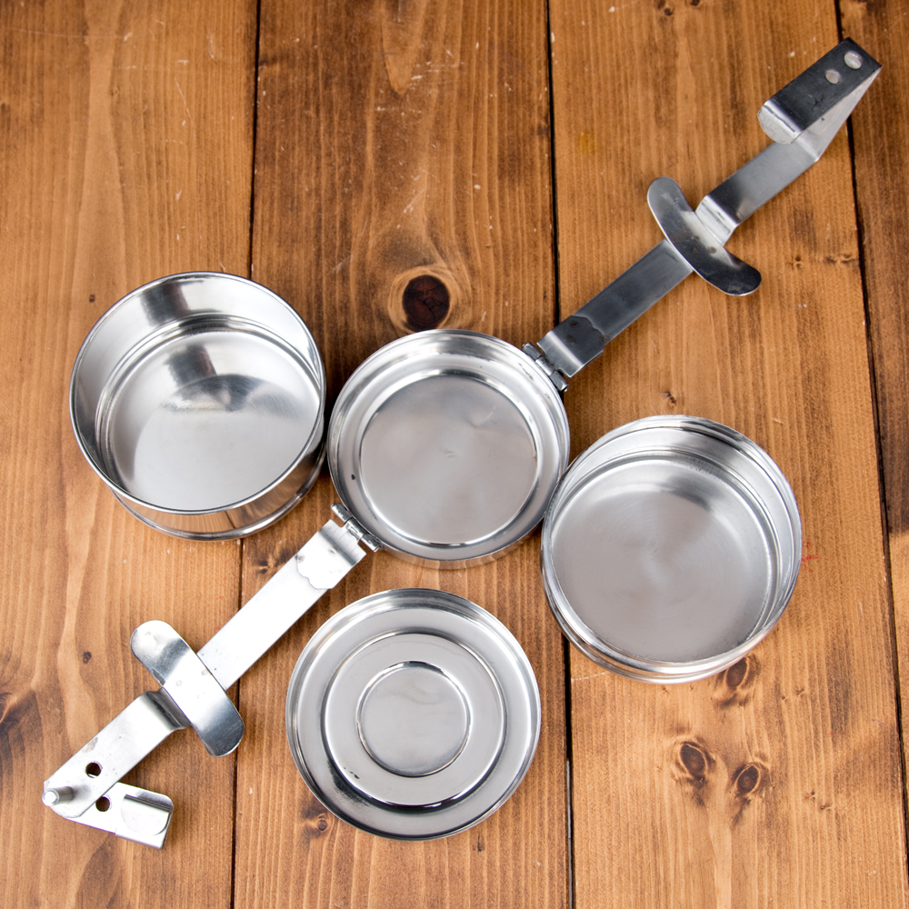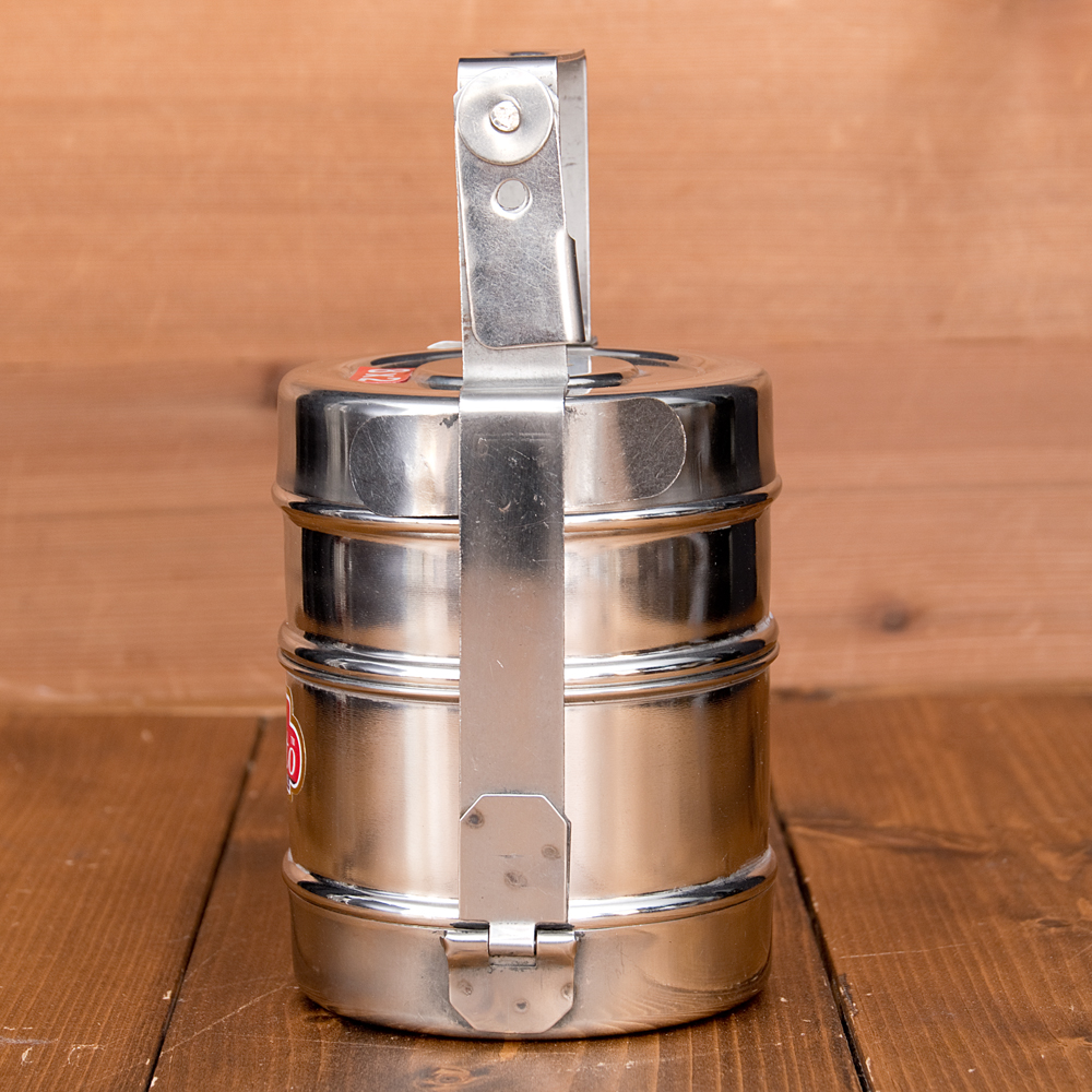 鍵が掛かる!インド2段ボンベイ弁当箱 ダッバーワーラー仕様【直径:約10cm 高さ:約19.5cm】 x 3個