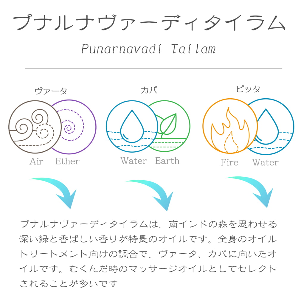 ![【送料無料・6個セット】KOTTAKAL プナルナヴァーディ タイラム[Punarnavadi tailam 200ML] 3 - プナルナヴァーディ タイラムは、アーユルヴェーダに伝わる伝統的な製法でつくられたハーバルオイルです](https://www.tirakita.com/cosme/Photos/set_cosm_124_3b.jpg)