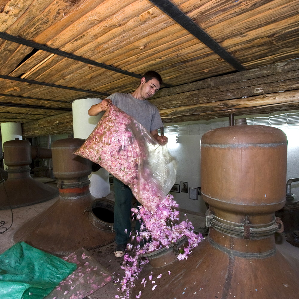 現地でローズウオーターを作っているところです