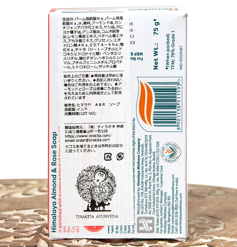 インドを代表的するブランド HIMALAYAのアーモンド&ローズ 石鹸です。