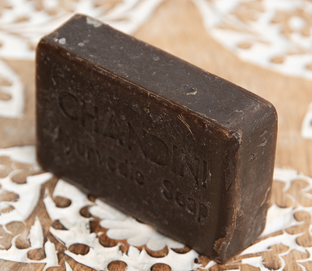 こちらはアーユルヴェーダの本場、南インド、ケララ州のコチにあるCKKM Pharmacyが製造しているアーユルヴェーダに則った手作り石鹸です。インドに自生し採取できる天然の成分と、石鹸を作るのに必要な水酸化ナトリウムだけで作られています。石鹸を固くするような化学成分が含まれていない、手作りの石鹸ですので、全体的に柔らかめです。